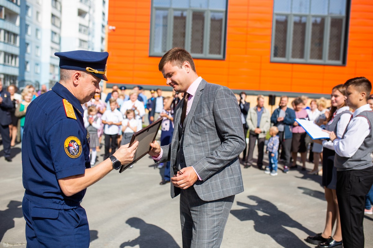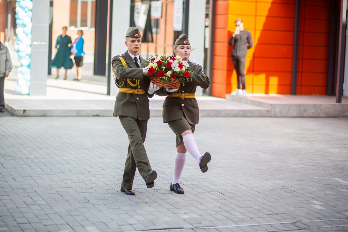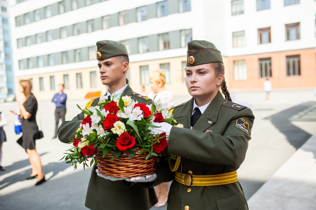 Участие в торжественном мероприятии приняли Уполномоченный по правам человека по Новосибирской области Нина Николаевна Шалабаева, депутат Совета депутатов города Новосибирска Кирилл Евгеньевич Покровский, Заслуженный лётчик-испытатель Российской Федерации, заместитель начальника лётно-испытательной станции ОАО «Новосибирское Авиационное Производственное Объединение им. В. П. Чкалова», Герой Российской Федерации, полковник запаса Валерий Серпионович Паташов, руководитель следственного управления следственного комитета Российской Федерации по Новосибирской области Андрей Сергеевич Лелеко, заместитель начальника управления образовательной политики и обеспечения образовательного процесса мэрии города Новосибирска Ирина Ивановна Тарасова, директор школы №215 им. Д. А. Бакурова Александр Алексеевич Шульга, родственники ветеранов Великой Отечественной войны, педагоги и школьники.