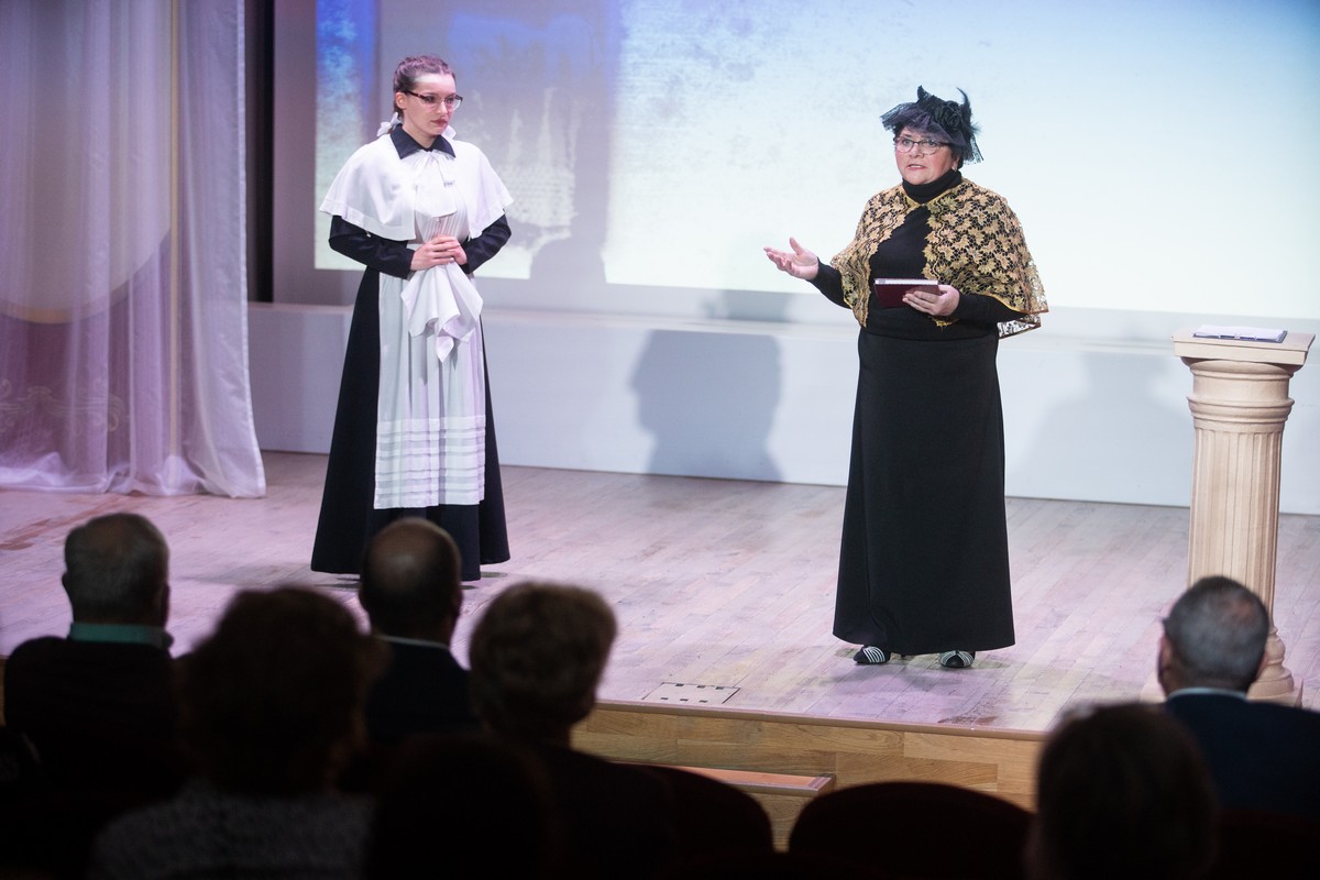 Понять время и жизнь юного Ново-Николаевска начала 20 века участникам помогли артисты Учительского театра «Большая перемена», представив главных героев альманаха, что называется воочию: ведущие (Ермолович Елена Вадимовна – заместитель директора гимназии № 14 «Университетская» и Дягилева Наталья Юрьевна – директор Дома Учителя); Жернаков Владимир Ипполитович, глава Ново-Николаевска (Аристов Юрий Сергеевич – директор школы «Диалог»); Смирнова Павла Алексеевна – начальник женской гимназии (Косиненко О.Г. – заместитель директора гимназии № 11 «Гармония»); Веденяпин Андриан Васильевич – выпускник Будаговской школы, директор первой советской школы (Пархутов Иван Сергеевич – учитель русского языка и литературы гимназии №11 «Гармония»); Воронцова Ксения Ивановна – учительница начальных классов Александровского училища (Черявко Юлия Юрьевна – директор лицея №126); Цендровская Елена Петровна – завуч Бугринской школы (Гудовская Ольга Эдуардовна – директор школы №51); Анастасия Дмитриевна Вяльцева – великая русская певица (Басова Наталья Владимировна – руководитель ансамбля молодых педагогов Дома Учителя); гимназистка (Крупина Анастасия Александровна – учитель-логопед Д\С №59). Творческим дуэтом Дома Учителя (методист Сорокина Татьяна Владимировна, звукооператор Сечко Сергей Григорьевич) подготовлено уникальное видео и звуковое сопровождение вечера.
