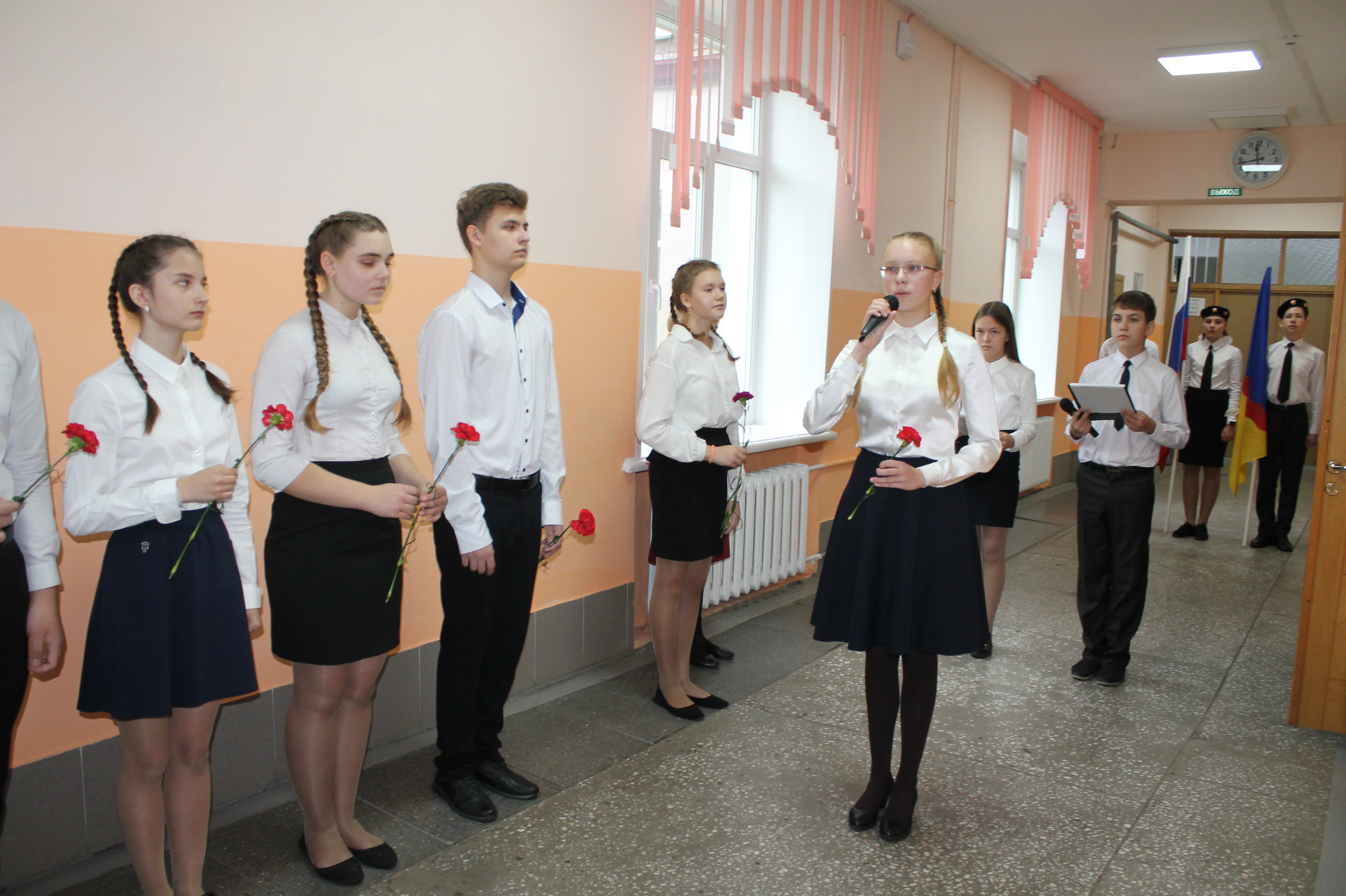 Учащиеся школы рассказали о жизненном пути Анисичкина Ф.И., о его подвигах на полях сражений Великой Отечественной войны, о послевоенном служении системе образования города и области. Владимир Федорович поделился теплыми воспоминаниями об отце, выразил благодарность коллективу школы, юным поисковикам-исследователям за сохранение светлой памяти об отце.