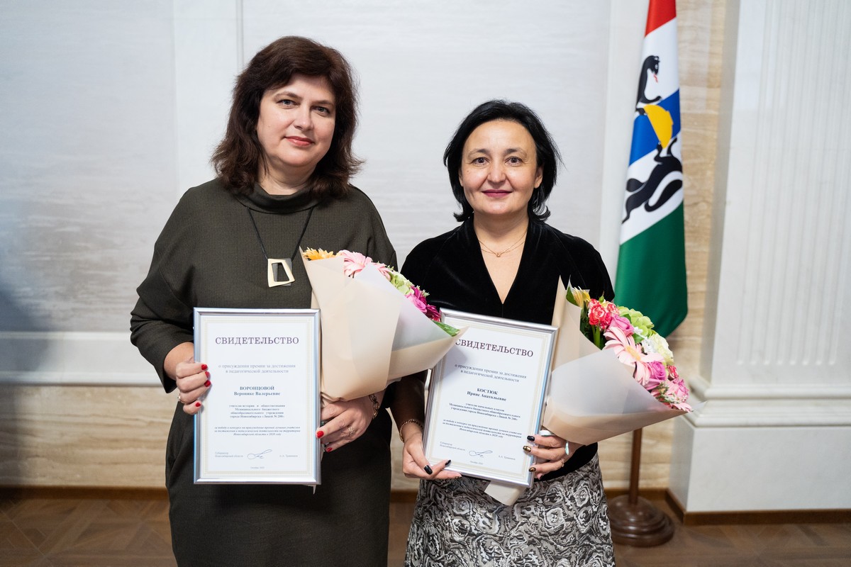 Пять победителей конкурса на присуждение премии «Почетный работник образования Новосибирской области» (награждаются за большой вклад в развитие системы образования в Новосибирской области и особые заслуги в профессиональной деятельности в сфере образования в 2020 году). Среди обладателей награды – Татьяна Сергеевна Пирогова, учитель русского языка и литературы Второй Новосибирской гимназии, и Лариса Дмитриевна Тузикова, учитель истории Гимназии № 7 «Сибирская» города Новосибирска.