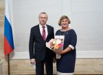 К участникам торжественной встречи обратился Губернатор Новосибирской области Андрей Александрович Травников: «Вы не просто учите других, передаете знания, воспитываете ребят, но всегда готовы учиться сами, стремиться к совершенству в своей профессии. Из 25 с половиной тысяч педагогов Новосибирской области 97 процентов являются постоянными участниками педагогических конкурсов. Это достойная цифра. Важно выстроить систему профессионального роста учителей, делиться этим опытом. В списке награждаемых сегодня есть представители и городских, и сельских территорий. И это радует, потому что способствует выравниванию уровня образования в разных школах разных муниципалитетов. От всей души благодарю вас за эти высокие результаты!».