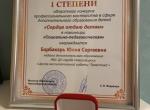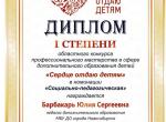 Юлия Сергеевна Барбакарь – дипломант I степени областного конкурса «Сердце отдаю детям»