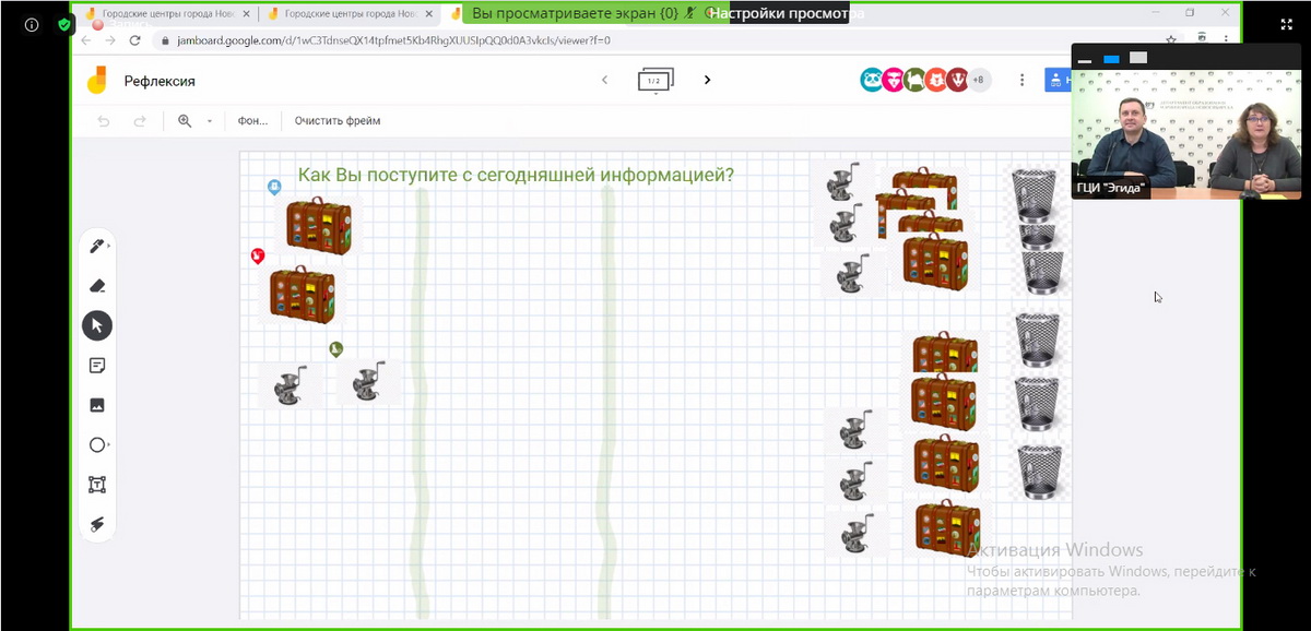 В ГЦИ «Эгида» учителя могут посетить обучающие курсы по использованию информационно-коммуникационных технологий, семинары, практикумы, мастер-классы, круглые столы и конференции. Так, в ходе встречи методисты центра познакомили молодых учителей с возможностями дистанционной работы в приложении Google Jamboard. Это интерактивная онлайн-доска, позволяющая дистанционно работать в режиме реального времени большому количеству участников. В ней можно совместно с коллегами или обучающимися создавать контент, печатать, писать и редактировать тексты, рисовать, загружать изображения и работать на этих изображениях.