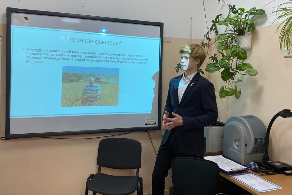фото № 5 – секция «Экономика и предпринимательство», выступление Куткина Даниила, 11 кл. (Диплом II степени, АКЛ), руководитель Гумиров Т.Ф.;
