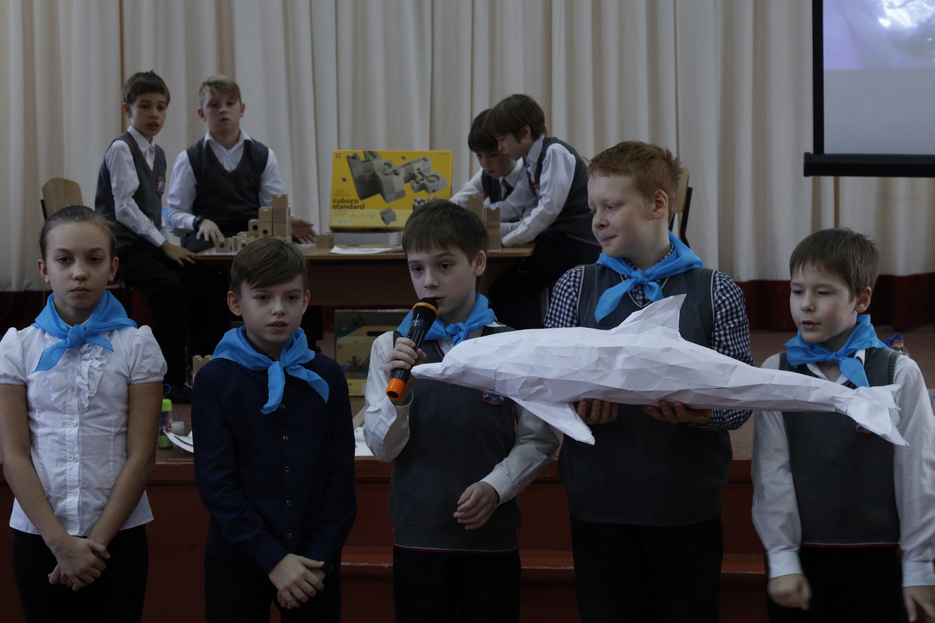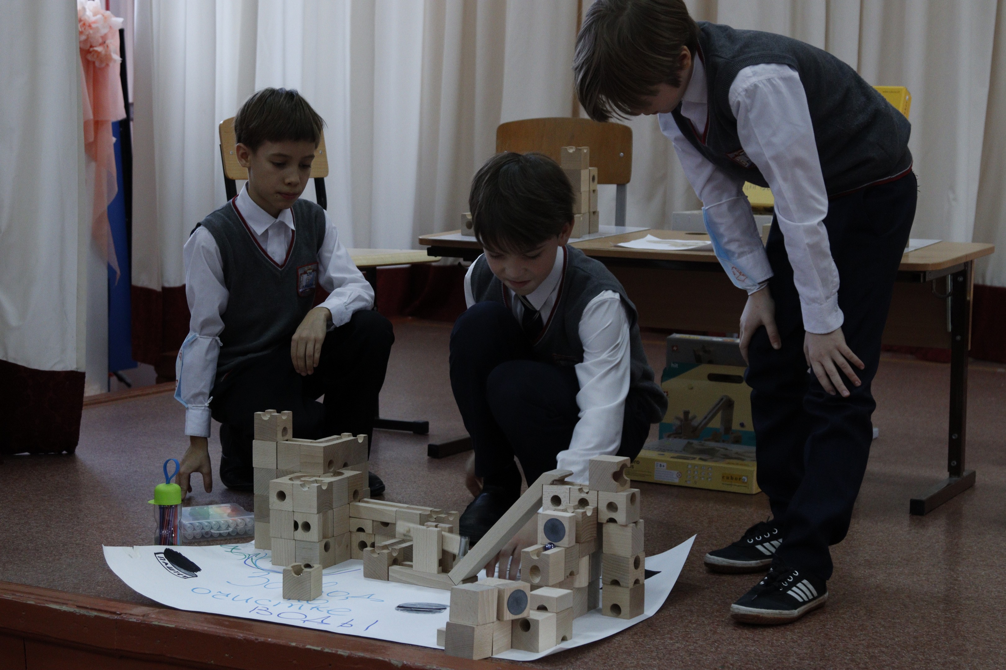 Команда лицея «Юные инженеры» решала проблему плавающих островов и продемонстрировала ее рациональное решение, сделав фонтан из пластиковых бутылок. Команда «Куб» собрали конструкцию завода по очистке воды на базе конструктора CUBORO, шахматная лаборатория показала, что решение экологических задач тоже имеет несколько степеней сложности, как и решение шахматных комбинаций. Свои идеи по решению экологических проблем представили лаборатории «Леттеринг», «Полигональное моделирование», «Робототехника», «Программирование».