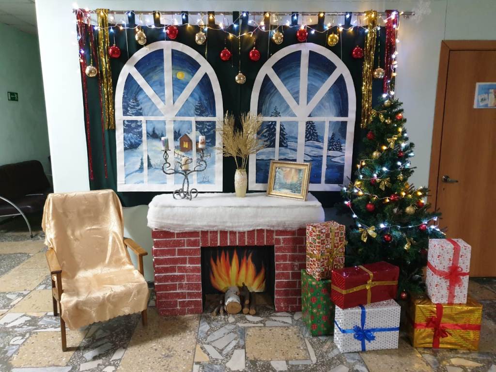 В холле 1-го этажа каждый желающий мог погреться у камина яркой, нарядной фотозоны с праздничной иллюминацией и почувствовать себя в настоящей рождественской сказке.