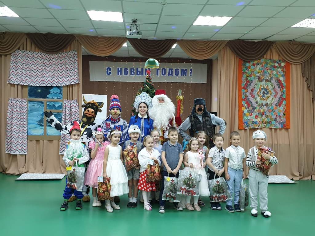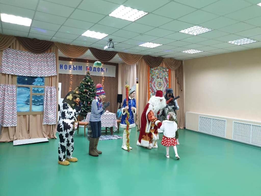 И вот, наконец, Шарик и дорогие гости на пороге, их встречают обрадованные Матроскин и Мурка, а ребята дарят в подарок задорную песню «Ты пришел к нам в гости, Дед Мороз». Дед Мороз и Снегурочка поблагодарили ребят увлекательной игрой «Заморожу» и стройным хороводом у зажженной елки под любимую мелодичную песенку «В лесу родилась елочка». Каждый приглашенный на представление получил от них сладкий подарок, а корова Мурка удостоилась даже золотой медали в честь того, что весь следующий 2021-ый год будет ей посвящен. Все обитатели дома в Простоквашино помирились и снова зажили дружно и счастливо.