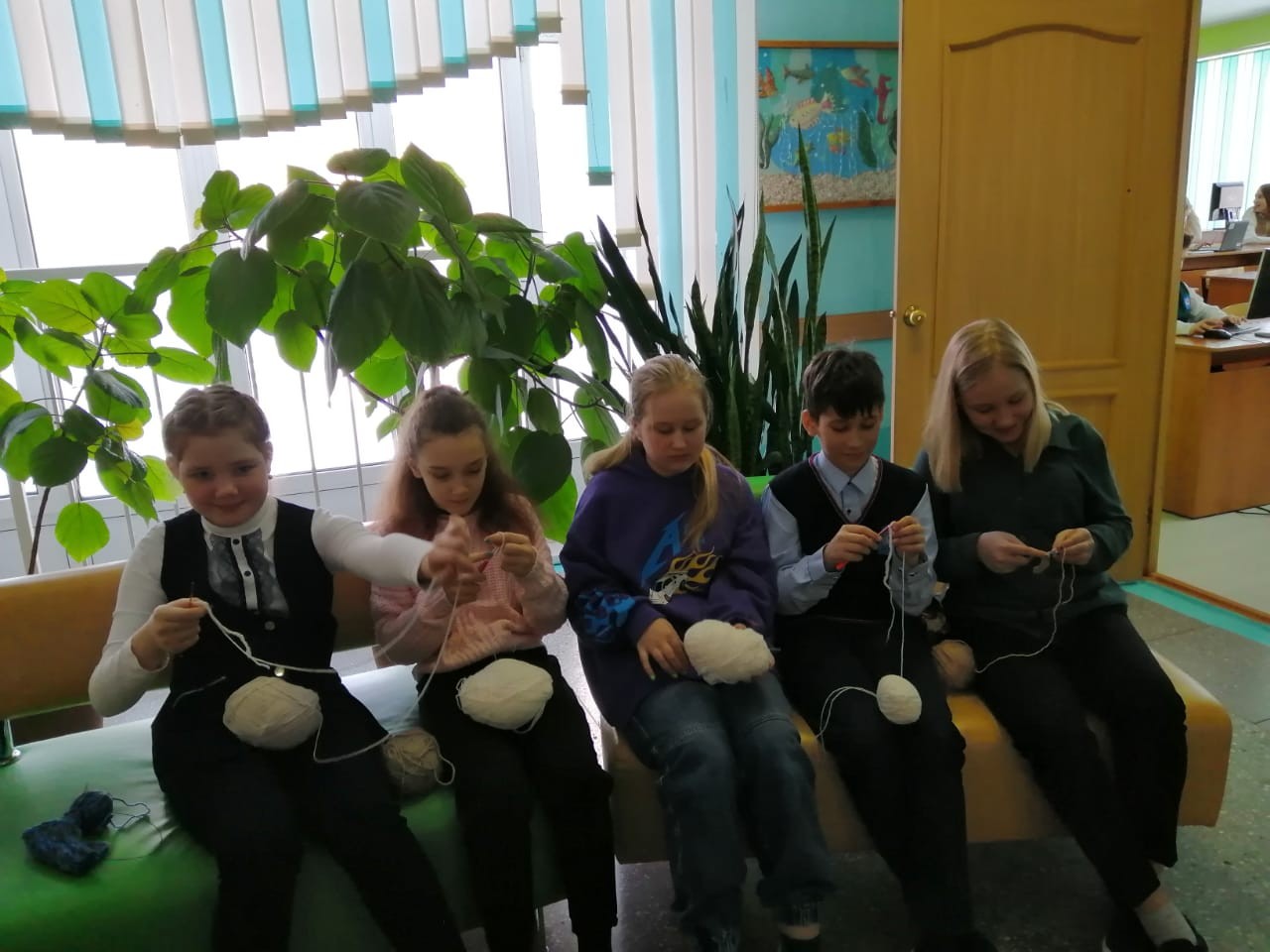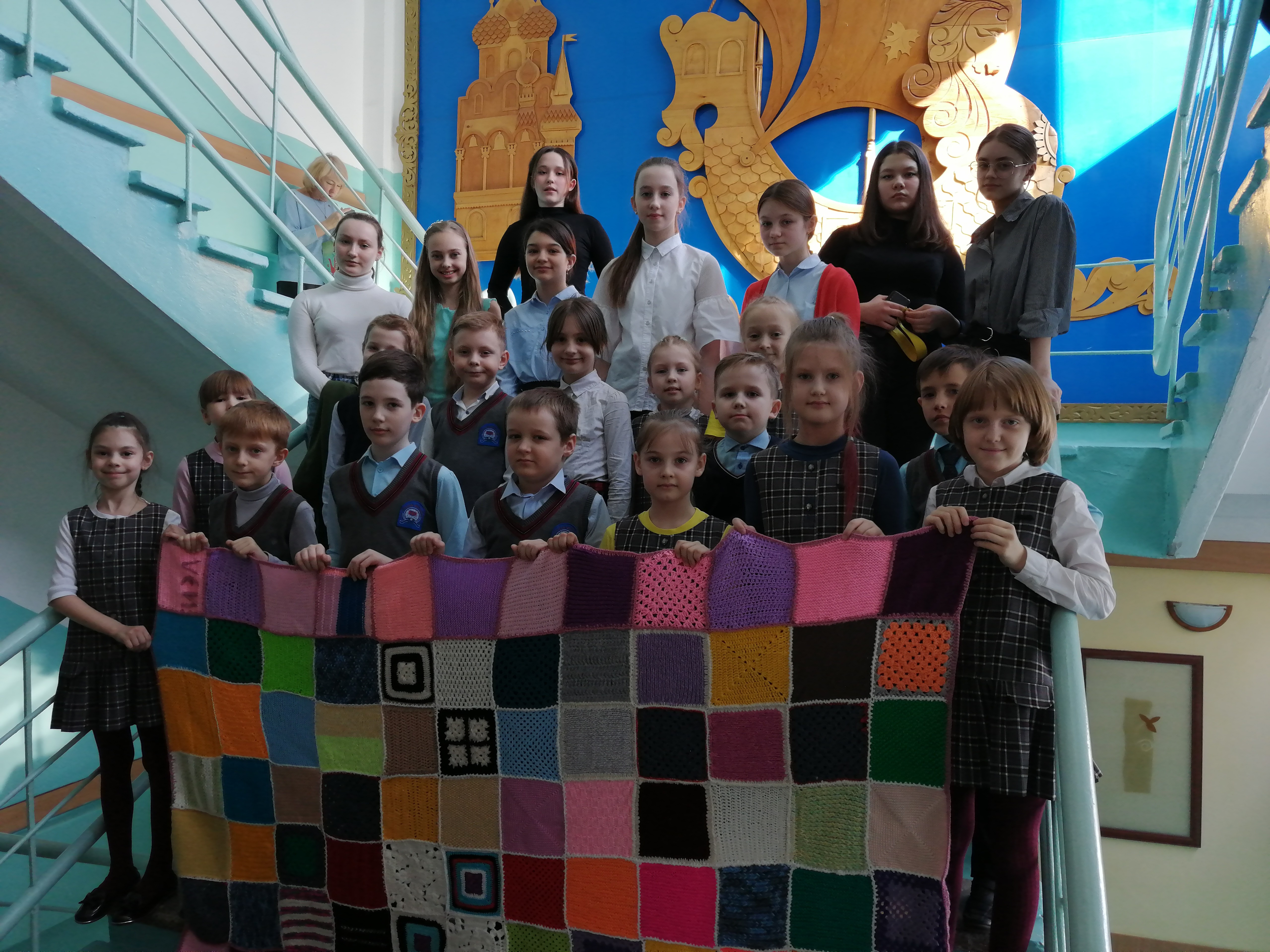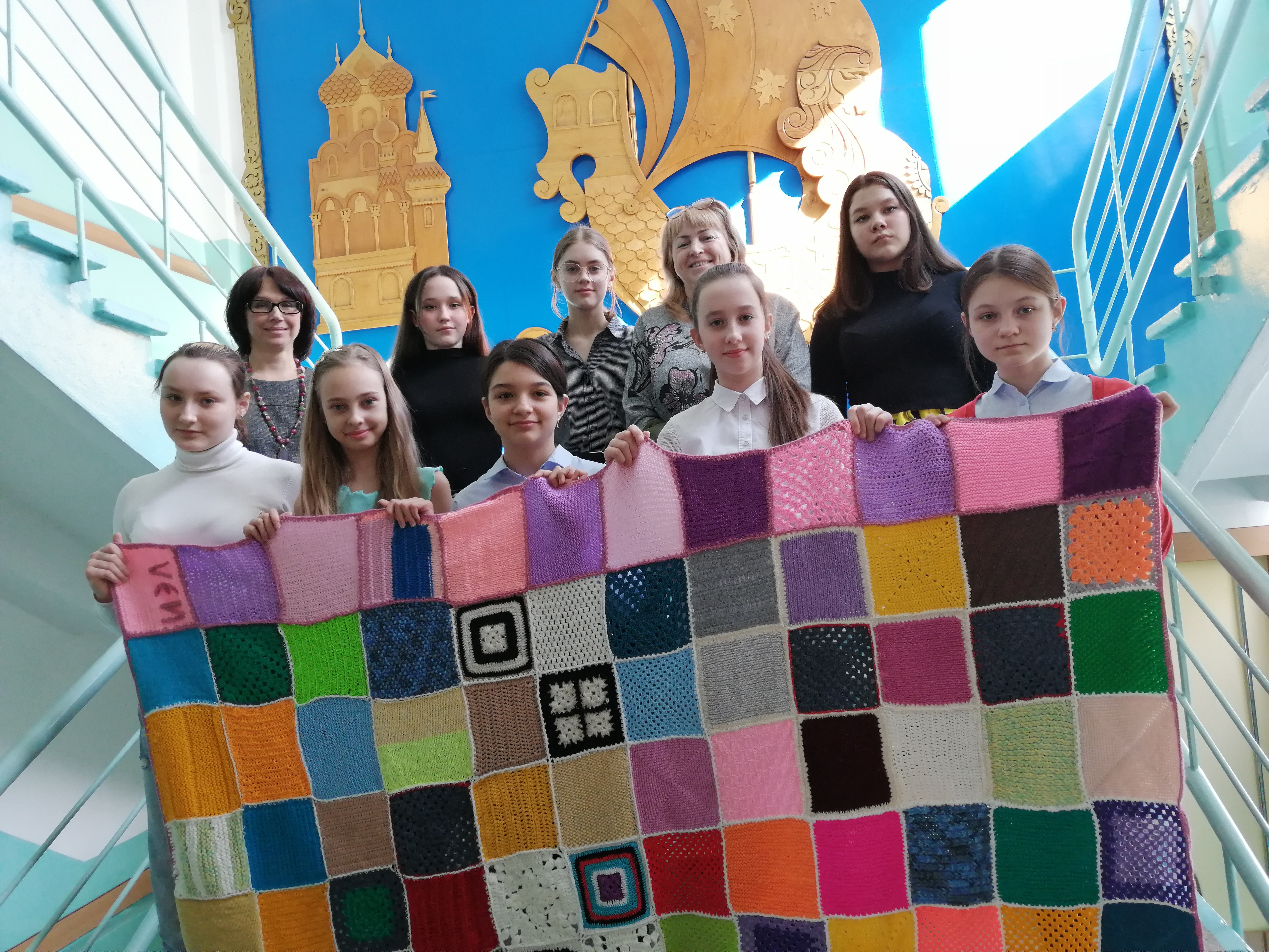 «Когда я узнала о том, что будет проходить такая акция, то подумала, что могу принять в ней участие, так как пряжа дома есть и вязать я умею. В ходе акции я уже не могла ограничиться маленьким квадратом. Наш класс вместе с классным руководителем Савельевой О.Ю. решил связать свой плед для пожилого человека из мягкой, пушистой пряжи. Сейчас наша работа на стадии завершения». Соколова Мария, 8 «Г» класс.