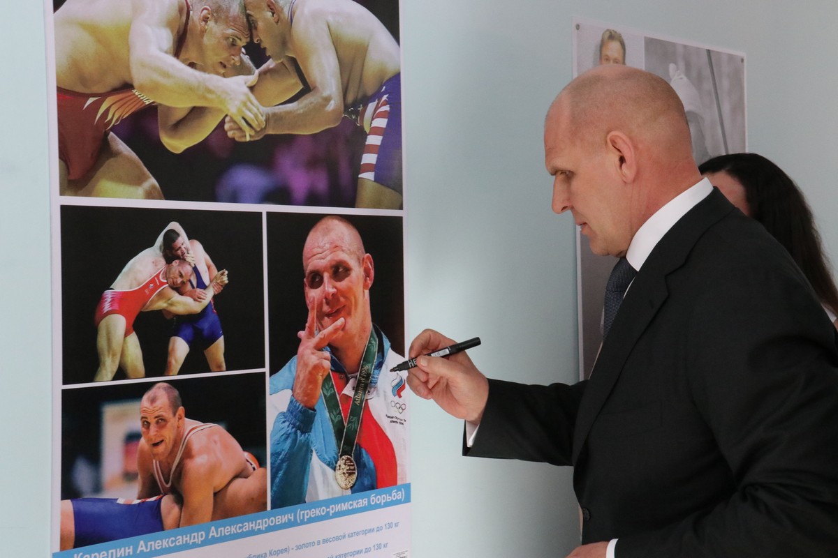 Александр Карелин посетил «Аллею Олимпийской славы» в школе №216
