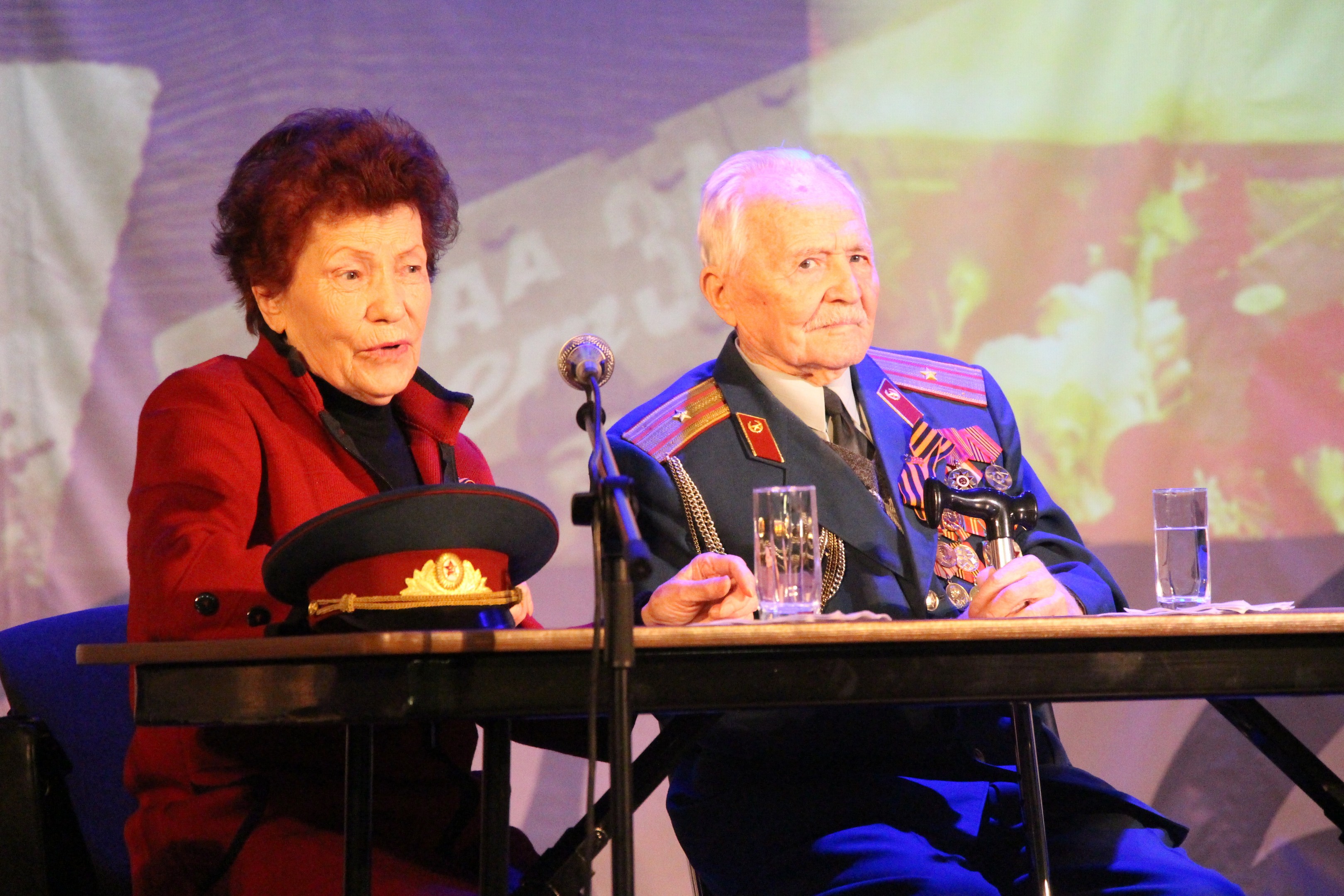 Завершилась тематическая встреча общей фотографией с почётными гостями. Уходя со сцены, Егор Макарович отдал честь и продемонстрировал отличную армейскую выправку, чем снискал аплодисменты всего зрительного зала. «Главное – никогда не терять своё лицо», – напутствовал молодое поколение 93-летний ветеран.