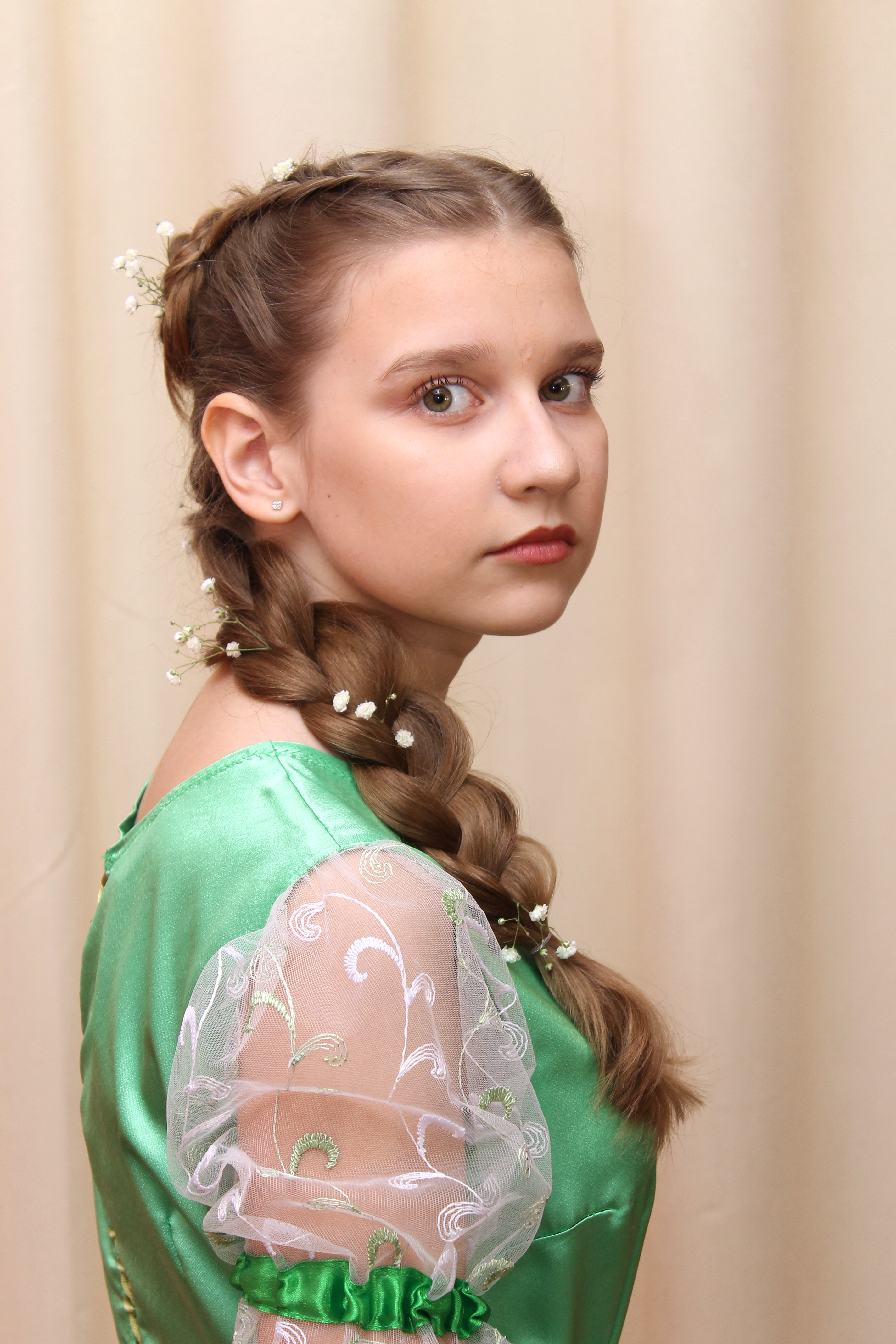 – «Коса – русская краса» (возрастные группы: 10-13 лет, 14-18 лет) – авторская причёска на длинных волосах, образ русской красавицы;