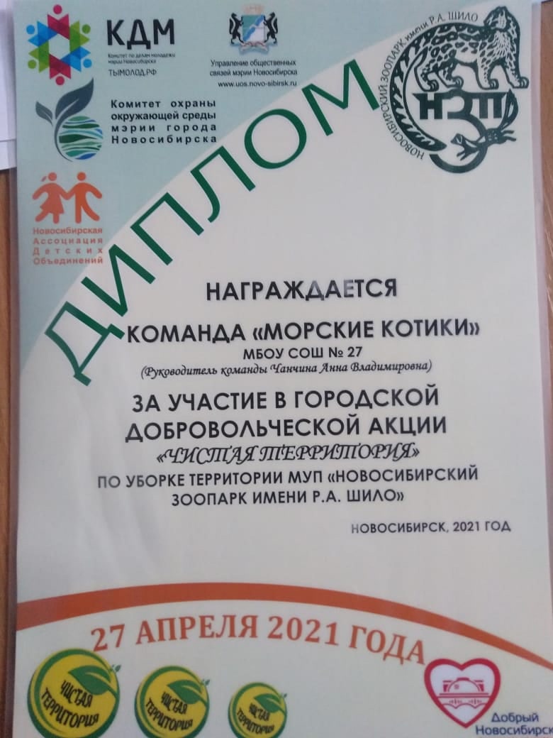 27 апреля в Новосибирском зоопарке им. Р. А. Шило прошла городская добровольческая акция «Чистая территория», в которой принимали участие обучающиеся нескольких средних профессиональных и общеобразовательных учреждений города, в том числе и учащиеся МБОУ СОШ № 27 Ленинского района.