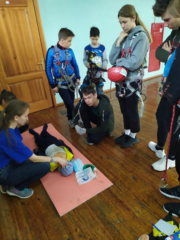– отработка технических приёмов: изготовление самодельных носилок, спуск пострадавшего в косынке по косому троллею, подъем пострадавшего из шахты лифта, транспортировка пострадавшего по лестнице на носилках, по навесной переправе, надевание костюмов химической защиты.