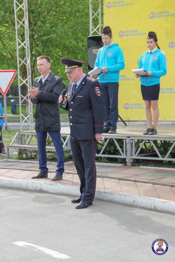 Торжественная линейка началась с приветственного слова организаторов: директора Новосибирского «Детского автогородка» Крамарова Виталия Геннадиевича и начальника Госавтоинспекции по городу Новосибирску Маслюка Евгения Вячеславовича. Виталий Геннадиевич и Евгений Вячеславович отметили значимость деятельности отрядов юных инспекторов движения и педагогов в сфере обучения детей навыкам безопасного поведения на дороге, пропаганды соблюдения ПДД в детской среде. С приветственным словом выступила почётный гость мероприятия – главный специалист Министерства транспорта Новосибирской области Григорьева Екатерина Петровна.