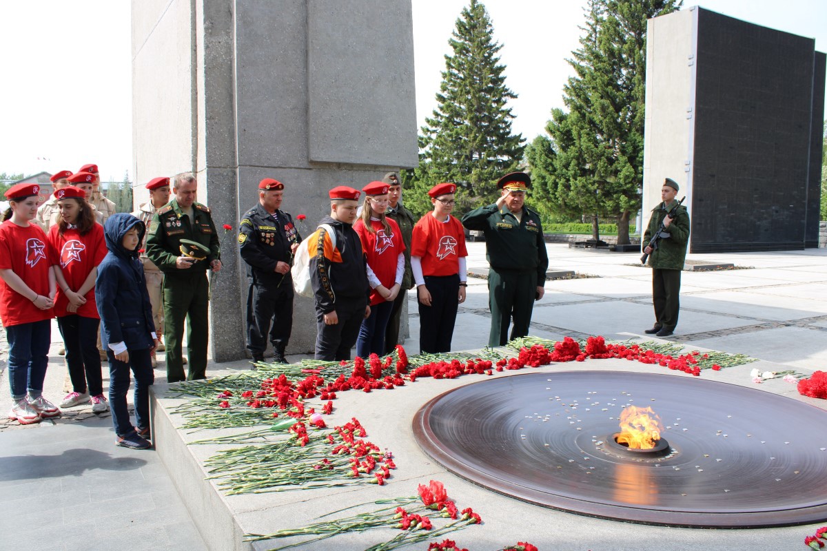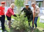 Ребята вместе с почетными гостями высадили елочки на территории школы. В завершении мероприятия юнармейцы возложили цветы к Вечному огню на Монументе Славы.