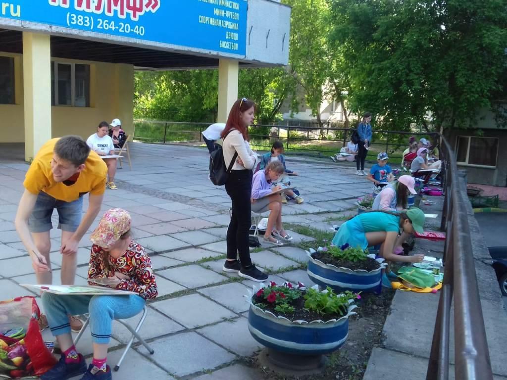 Новшеством этого года стало участие в профильной смене студентов Института Искусств НГПУ, проходящих практику на базе Центра внешкольной работы «Галактика». Участников профильной смены разделили на две группы. Одна группа под руководством педагогов Михайловой Надежды Владимировны и Антонюк Анастасии Валерьевны работала рядом с ЦВР «Галактика» в парке Дзержинского и сквере Авиаторов. Вторая группа под руководством Кочетковой Олеси Владимировны и Костюченко Натальи Геннадьевны рисовала окрестности вблизи клуба «Калейдоскоп». Были и совместные дни, когда обе группы собирались вместе. В первый день смены была проведена игровая программа для всех участников пленэра. Особенно запомнился совместный день в «Контактном зоопарке» на территории ПКиО «Березовая роща», где группы рисовали зарисовки и наброски зверей, а также заключительный день, в который была проведена автобусная экскурсия по историческим достопримечательностям города Новосибирска с последующем торжественным вручением сертификатов об участие в летней профильной смене «Мастерская под солнцем».