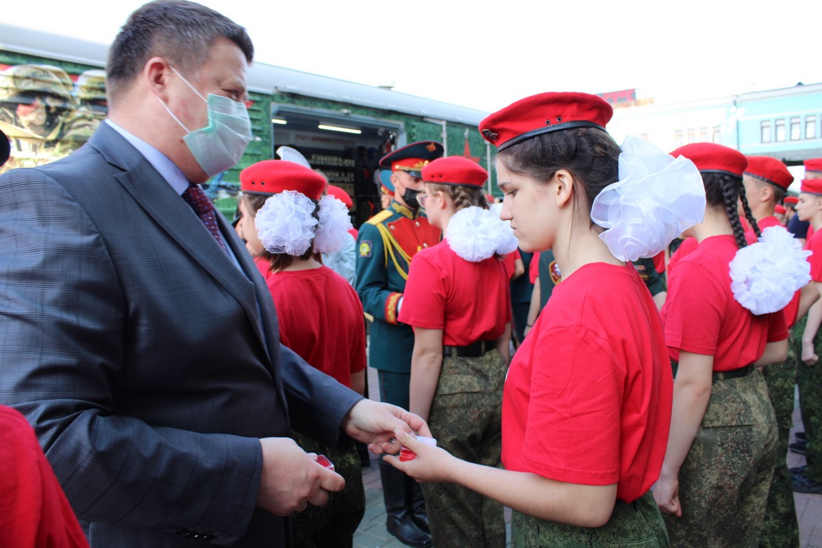 На перроне агитационный поезд встречали юнармейцы местного отделения ВВПОД «ЮНАРМИЯ» города Новосибирска. В торжественной обстановке 56 ребят принесли клятву юнармейскому братству и вступили в ряды Всероссийского детско-юношеского военно-патриотического общественного движения «ЮНАРМИЯ». Это были ребята из МБОУ СОШ № 105, МБОУ СОШ № 195, МБУДО ДМЦ «Флагман» и МБУДО ЦДО «Алые паруса». Почетные гости вручили юнармейцам значки с символикой Движения.