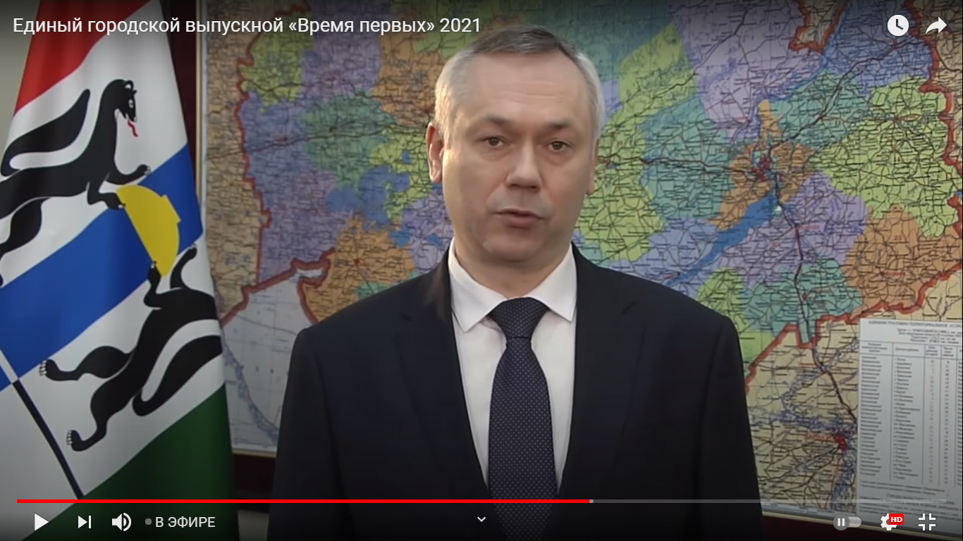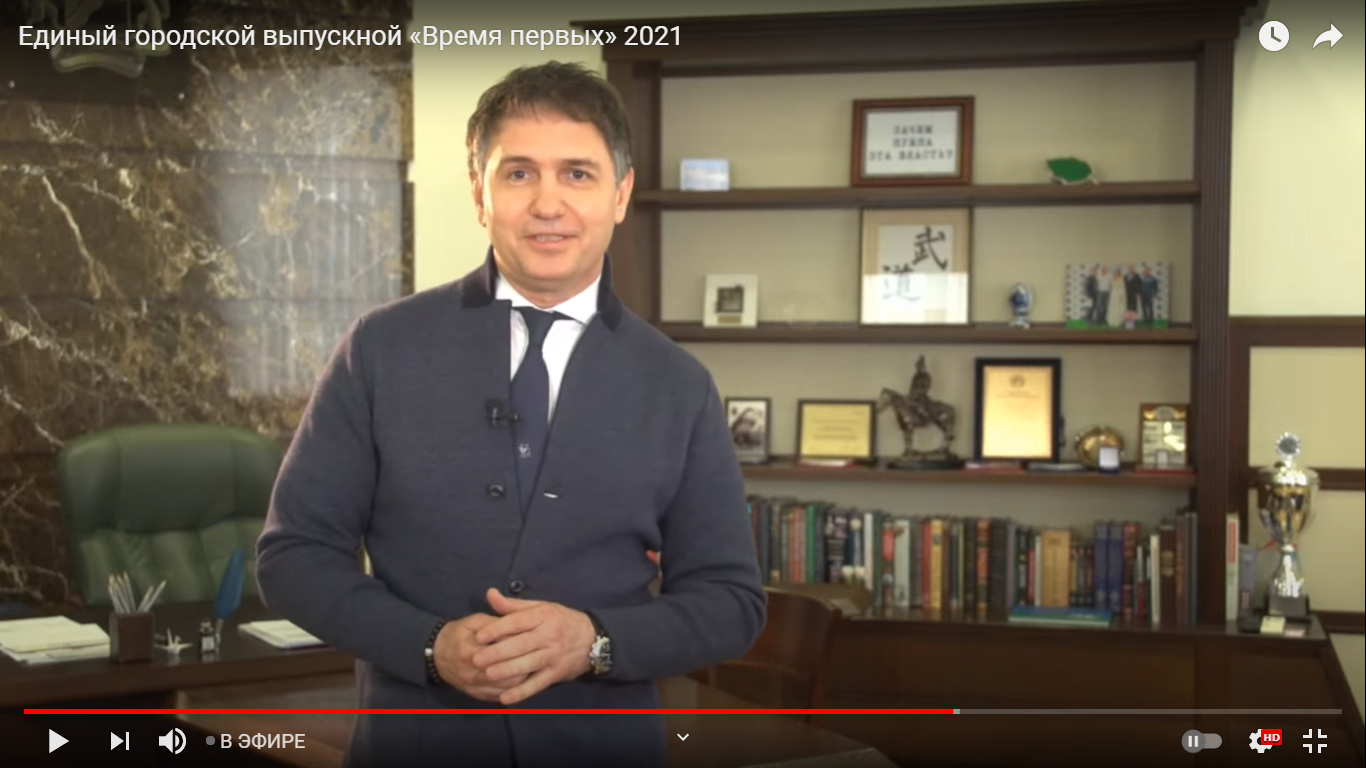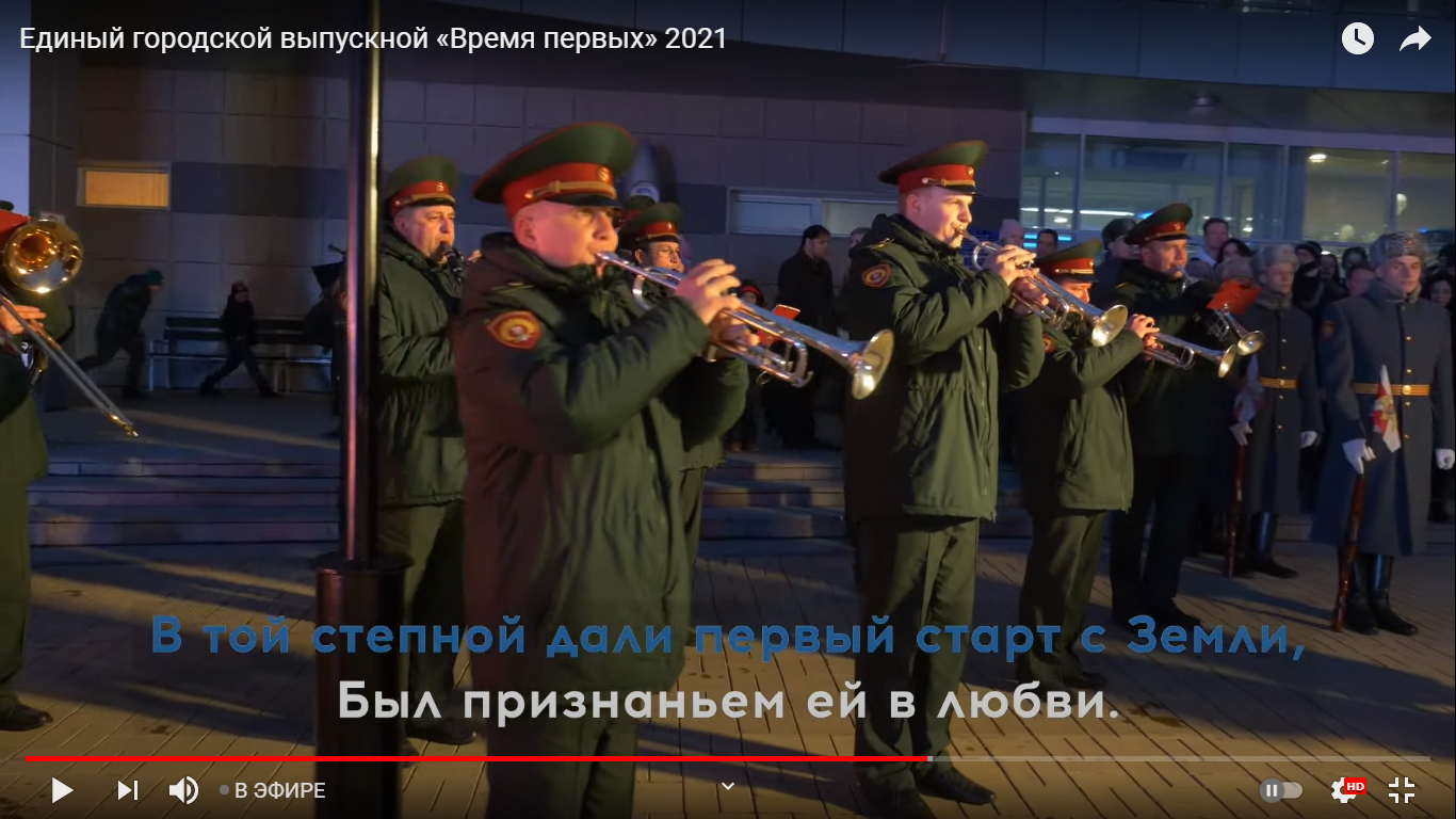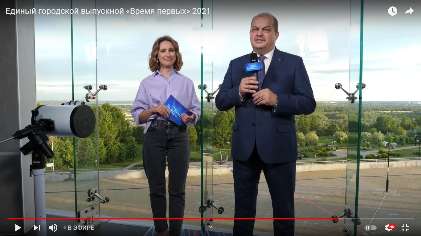 В этом году ставший традиционным Единый городской выпускной «Время первых» состоялся в онлайн-формате. В нём приняли участие около 9 тысяч выпускников 11 классов образовательных учреждений города Новосибирска. Прямая трансляция из четырех специально организованных студий осуществлялась на странице департамента образования в социальной сети ВКонтакте и YouTube-канале департамента образования.