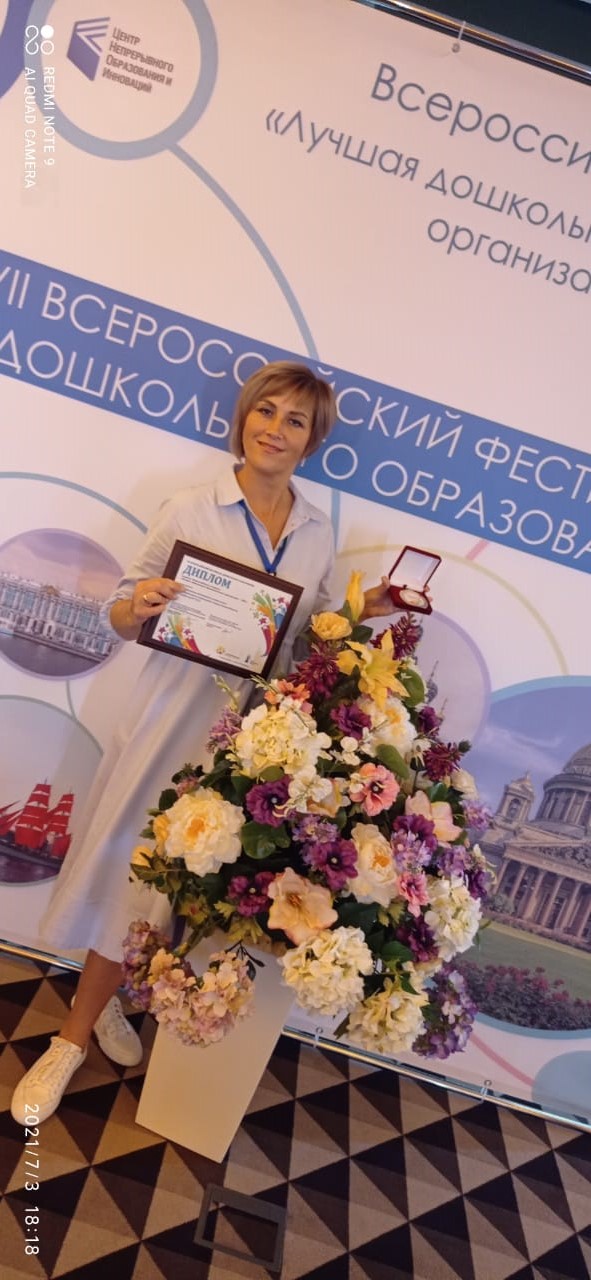 МАДОУ д/с № 555 вошел в число пятидесяти детских садов, которые признаны лучшими дошкольными учреждениями России. В рамках VII Всероссийского фестиваля работников дошкольного образования, состоявшегося в Санкт-Петербурге 3 июля, руководителю учреждения Бектяшкиной Т.А. вручена медаль и диплом лауреата Всероссийского конкурса «Лучшая дошкольная образовательная организация – 2021». В рамках фестиваля детский сад №555 представил опыт своей работы по экономическому воспитанию дошкольников в процессе ранней профориентации.