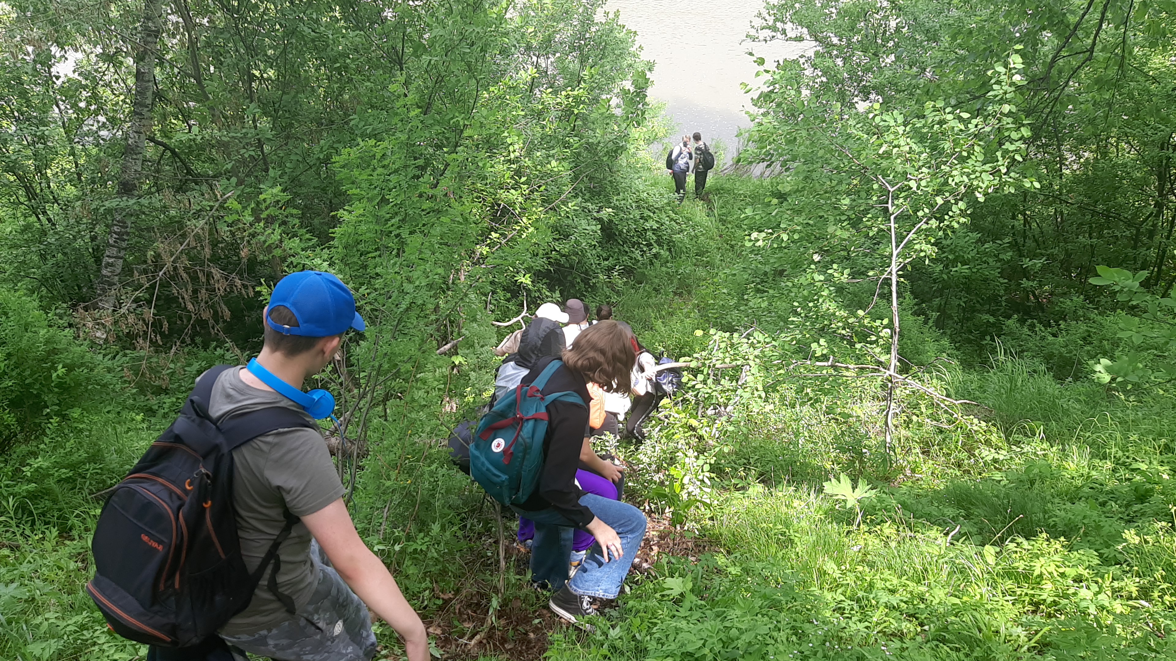 Следуя по грунтовой дороге от станции «Крахаль», мы пересекли реку Иня по мосту, спустились в овраг, заросший кустарниками, крапивой, декоративными травами, обнаружили русло небольшого ручья, пройдя по течению которого, вышли на противоположный берег реки Иня.
