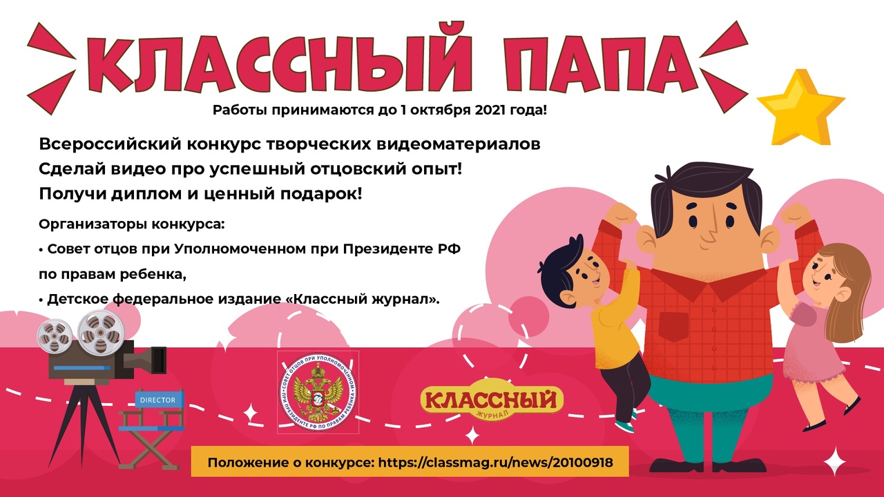 Совет отцов при Уполномоченном при Президенте РФ по правам ребёнка и Детское федеральное издание «Классный журнал» при содействии Российского движения школьников проводят Всероссийский конкурс видеоработ «Классный папа».