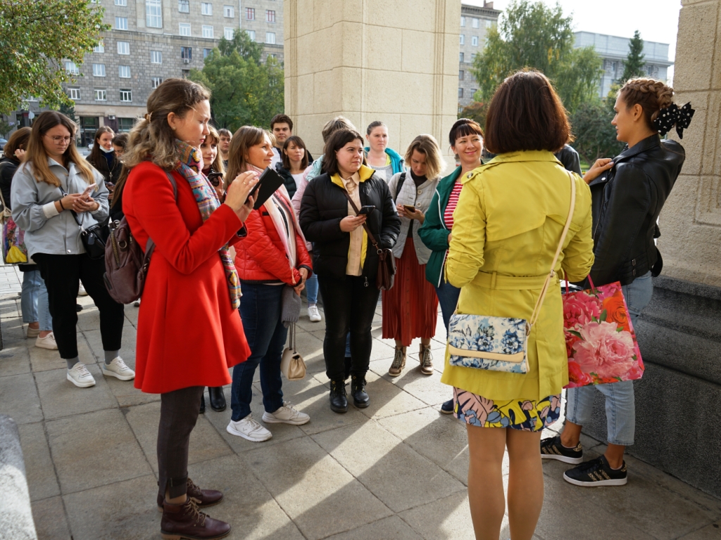 Перемещаясь между локациями по фотоподсказкам, участники погружались в атмосферу знаковых городских мест и сделали множество эмоциональных кадров. У театра «Глобус» вспомнили детство и порисовали мелом на асфальте, попутно обсуждая многообразный мир подростков на примере фестиваля перформативной культуры «Знаки». Напротив Дома актёра прониклись умением «Быть на одной волне». В театральном парке НОВАТа нашли свидетельства разных эпизодов истории города и узнали о традиции Балов молодых педагогов. Рядом с Театром кукол, примерив роли марионеток, рассмотрели простые тренинговые упражнения для работы с группой. А завершили прогулку поэтической импровизацией на крыльце «Красного факела». Неожиданно для активных участников к ним присоединились не только коллеги, но и случайные подростки, катавшиеся неподалёку на самокатах.