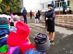 После чего дети вместе с инспектором дошли до перекрестка, где познакомились со светофором и его сигналами, узнали об отличии регулируемых и нерегулируемых пешеходных переходов. Также инспектор обратила особое внимание на то, что осенью световой день сокращается, а значит, необходимо использовать световозвращающие элементы на одежде, чтобы водители успели заблаговременно заметить пешехода и остановиться.