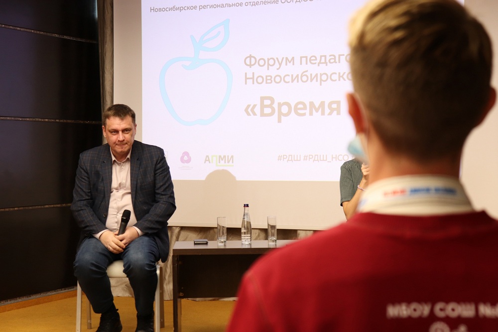 С педагогами встретился и министр образования Новосибирской области Сергей Федорчук, который ответил на вопросы участников педагогического форума. Сергей Владимирович признался участникам в том, что очень скучал по РДШ и с большим удовольствием станет участником проекта «Классные встречи».