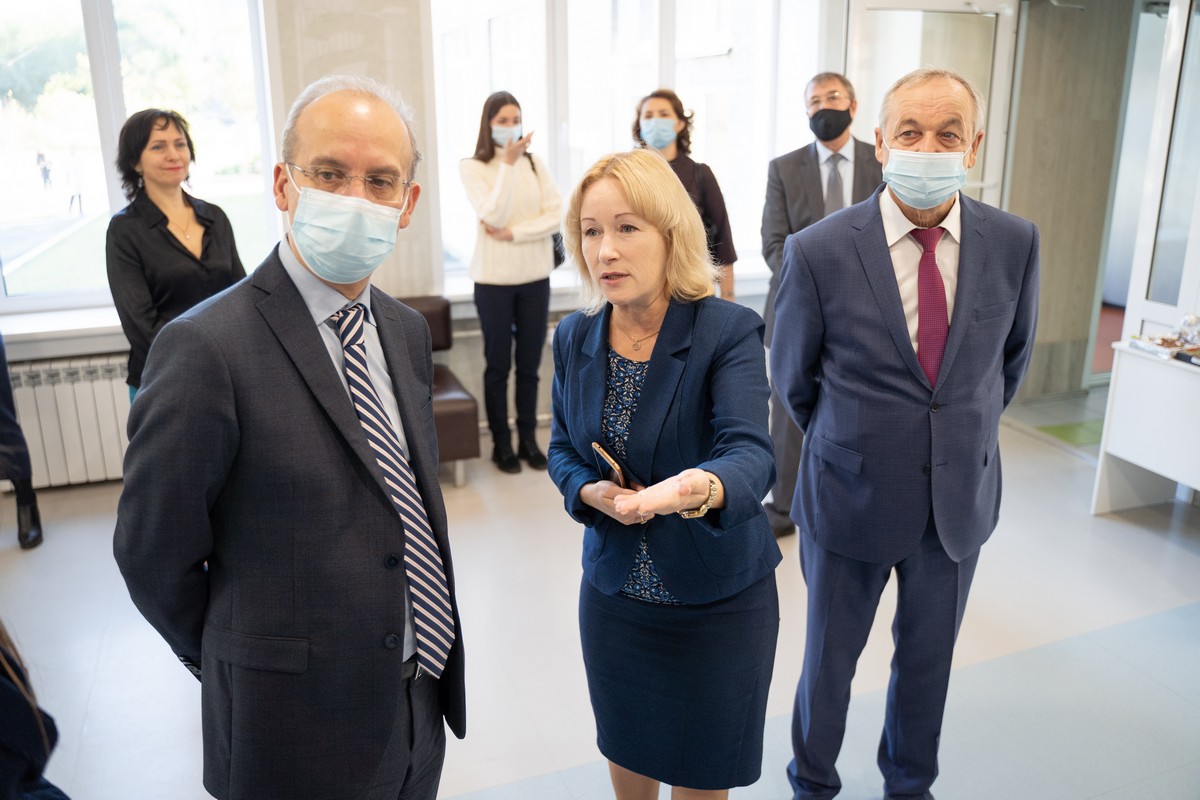 В ходе встречи для гостей была проведена экскурсия по лицею. В рамках внеурочной деятельности для всех желающих занятия в образовательном учреждении продолжаются и в период осенних каникул. Гости познакомились с работой Лицейских инженерных открытых мастерских, посетили лаборатории Робототехники, занятия подготовки к Олимпиаде НТИ, IT-class, VR-студию, Математический центр «Полином» и специализированные медицинские классы. Как рассказала заместитель директора лицея № 22 «Надежда Сибири» Татьяна Анатольевна Лобарева, учащиеся лицея ежегодно участвуют в работе Школы системной биологии в Барселоне (на сегодняшний день – дистанционно). Также в лицее работают классы преподавания испанского языка как второго иностранного, где уже второй год проводятся уроки не только для учащихся лицея, но и – в рамках сетевого взаимодействия – для школьников Новосибирской области, занятия ведут учителя высшей категории, участники программы «Европроф».
