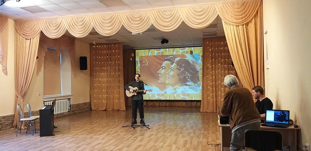 За плечами каждого ветерана – большой путь, осенённый в самом начале бессмертным подвигом отцов и дедов – святого поколения победителей, их примером беззаветного служения Родине. «Песня самолёта-истребителя» Владимира Высоцкого прозвучала под гитару в исполнении Владимира Жукова (педагог – Безлуцкая Ольга Николаевна).