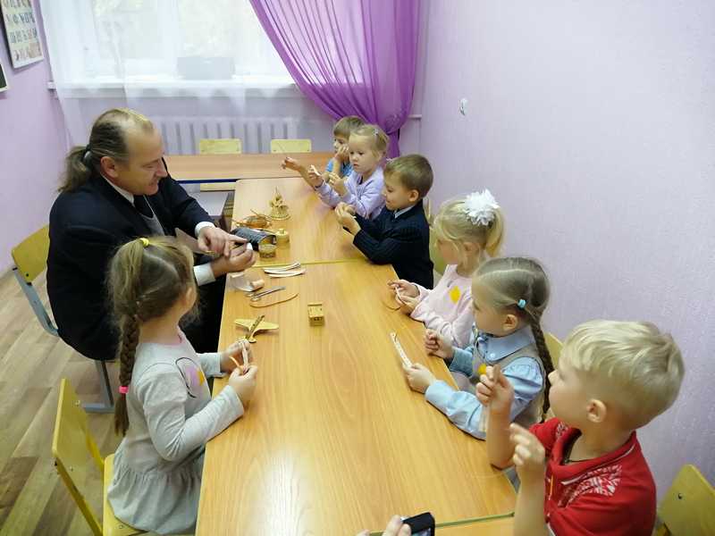 Иван Васильевич не только рассказал детям как береста берёзы использовалась в качестве звукового сигнала – свистка, но и продемонстрировал это. Все желающие с огромным восторгом пробовали свистеть!