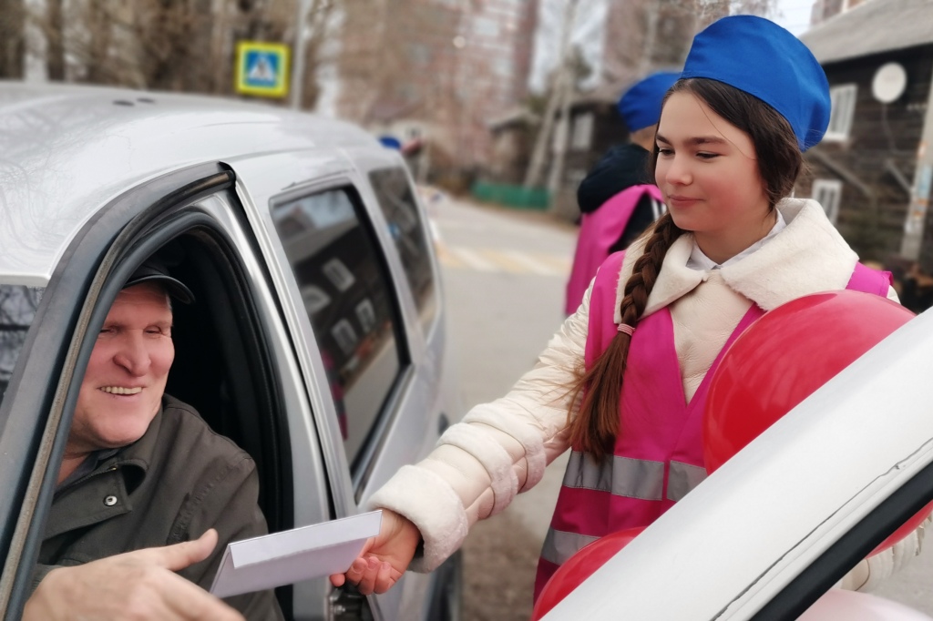 В ходе мероприятия школьники поздравляли водителей с профессиональным праздником, а автоинспекторы беседовали с ними о недопустимости нарушений Правил дорожного движения.