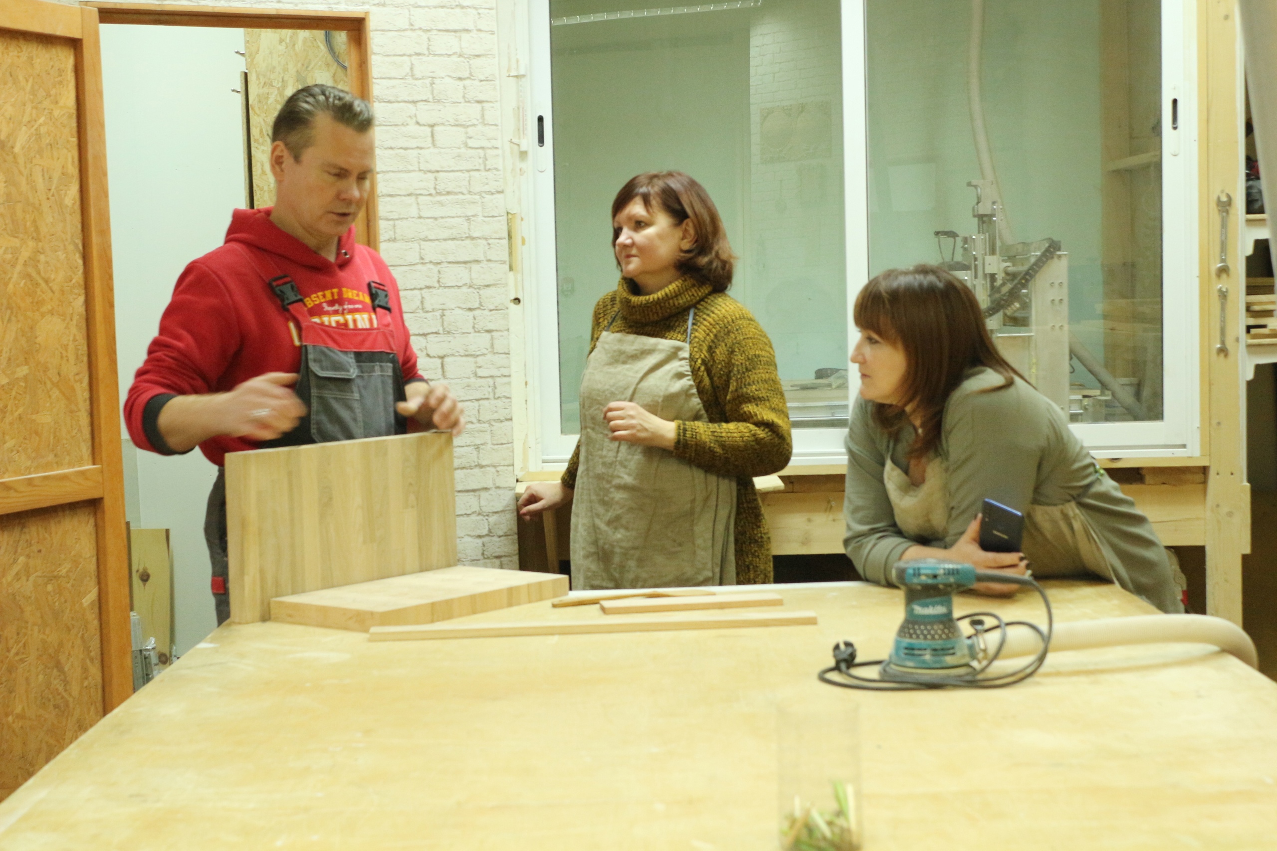 Многие хозяйки всегда имеют под рукой не одну, а минимум две доски, для разных продуктов. На мастер-классе педагоги изготовили настоящие разделочные доски для шеф-поваров, они достаточно необычны в хозяйстве, поскольку много весят и занимают место, но это замечательный опыт работы с деревом. Каждая доска уникальна и требует времени и индивидуального подхода. Участницы научились работать с деревом, шлифовальной машинкой, и понимать – как много времени и сил уходит на изготовление одного изделия.