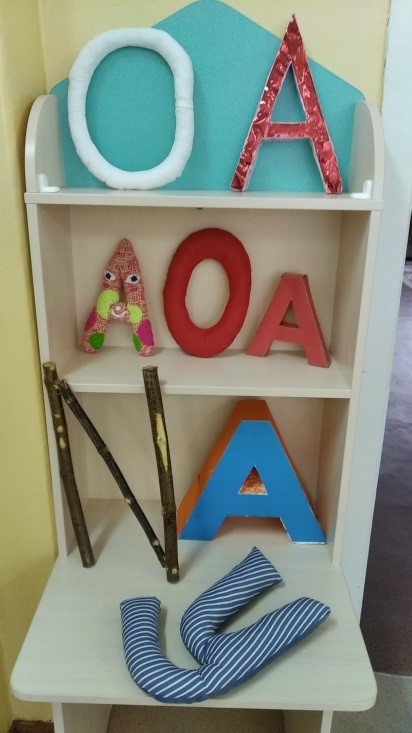 Дети на протяжении двух месяцев знакомились с гласными звуками и буквами, разучивали стихи про гласные буквы, играли в различные дидактические игры, раскрашивали, лепили, выкладывание буквы из пуговиц, ниток, семян, проволоки и фасоли.