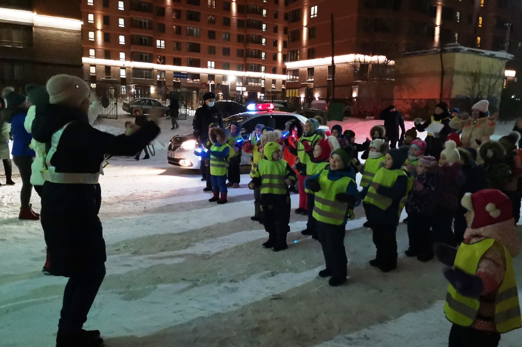 Воспитанники с воспитателями исполнили зажигательный танец в одежде со световозвращающими элементами, чем привлекли внимание детей и взрослых к проблеме безопасности на дорогах и продемонстрировали необходимость использования световозвращающих элементов на одежде. Ребята наглядно показали, что благодаря фликерам водитель может увидеть пешехода с дальнего расстояния и предпринять необходимые меры для предотвращения наезда.