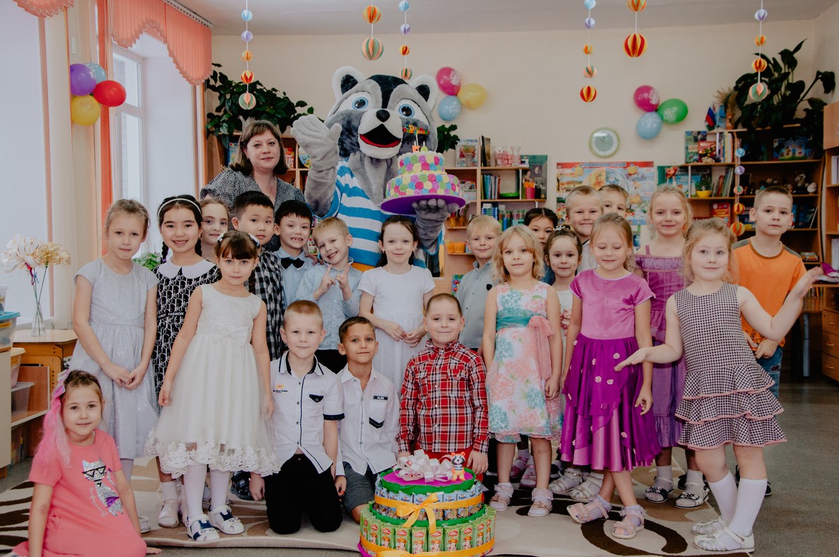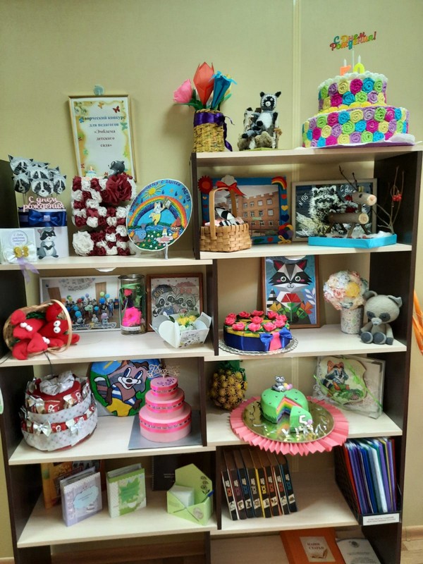 А сегодня праздник удался на славу! В гости в каждую группу приходил наш главный воспитанник – Енот, которому дети дарили подарки, сделанные вместе с родителями, читали ему стихи, пели песни, а Енот угощал детей большим тортом. В каждой группе была создана газета «Один день из жизни детского сада». Все педагоги приняли участие в творческом конкурсе «Эмблема детского сада», победителем, которого стала воспитатель группы «Радуга» Кротова Т. К.
