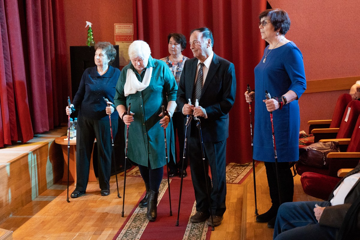 В последний день осени в Доме Учителя состоялись традиционные занятия творческого объединения ветеранов педагогического труда «Школа для взрослых». Этот проект реализуется Домом Учителя с 2017 года и направлен на создание условий для развития ветеранского педагогического сообщества города Новосибирска. Традиционно проект поддерживает Региональный центр медицинской профилактики Новосибирской области (РЦМП НСО), директор Фомичева Марина Леонидовна. Специалисты центра провели занятия по проблемам питания ветеранов (Беспрозванная Елена Анатольевна – заведующий отделом РЦМП, к.м.н.), технологии скандинавской ходьбы (Щербакова Ольга Владимировна – руководитель Регионального физкультурно-спортивного отделения Федерации скандинавской ходьбы). На занятиях Школы ветераны познакомились с достижениями муниципальной системы образования (представлен видеофильм о системе образования города Новосибирска), работой Дома Учителя. А также участникам было представлено творчество ветерана педагогического труда, заслуженного учителя Российской Федерации Галины Ивановны Каменевой. В завершение занятий Школы Дом Учителя подготовил для ветеранов творческий подарок. Данное мероприятие транслировалось на канале YouTube департамента образования мэрии города Новосибирска, очно и онлайн участниками Школы стало 90 ветеранов педагогического труда.