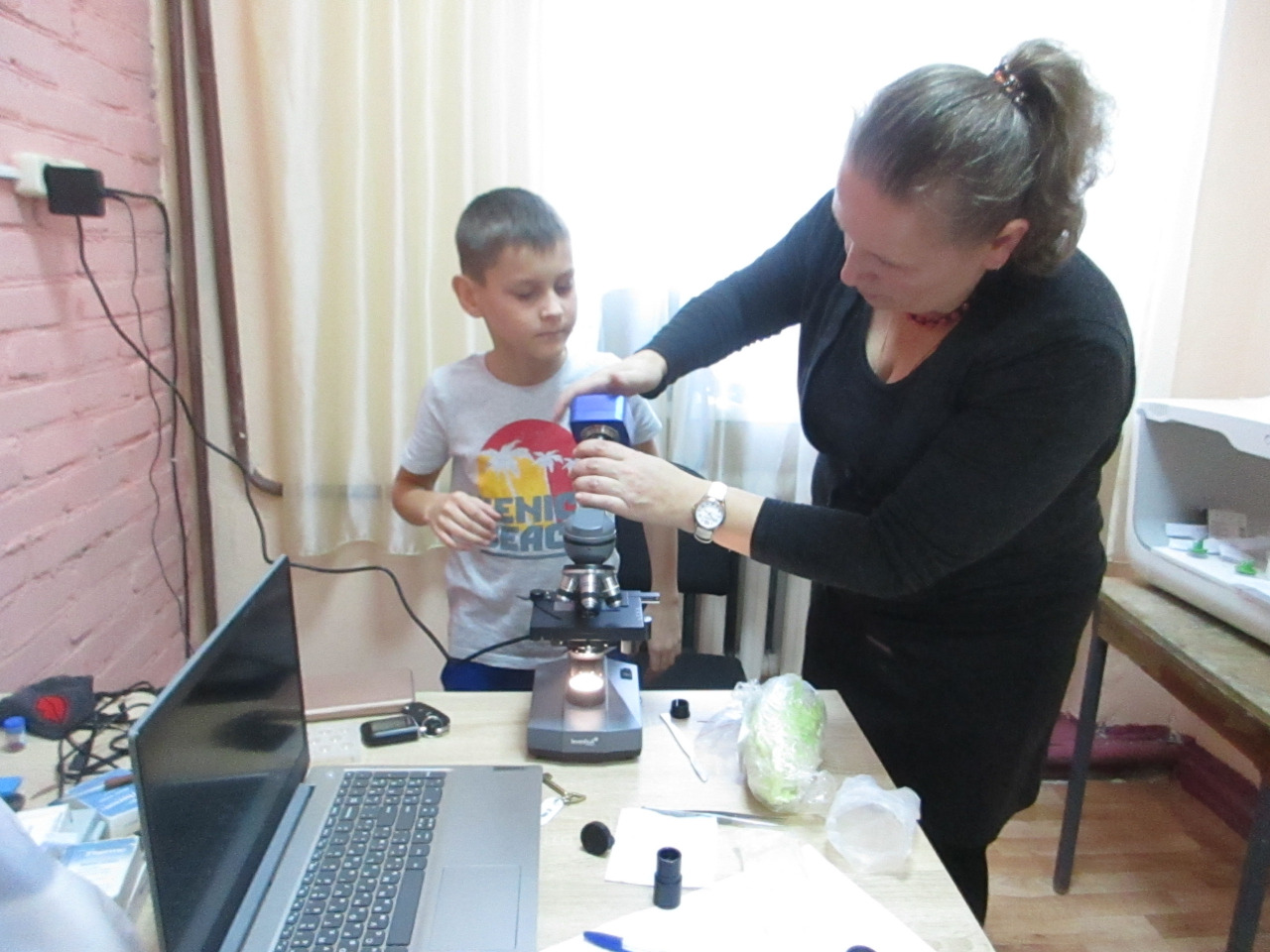 У ребят много интересного впереди – и большие проекты, и фестиваля, и конкурсы, и экскурсии в Институт цитологии и генетики, где работает Татьяна Владимировна. Там через электронный микроскоп можно увидеть и вирусы, и бактерии! А пока ребята могут фотографировать клетки, увиденные в микроскопе, и рассмотреть их вместе на мониторе компьютера, а с помощью видеокамеры наблюдать за развитием живых организмов. В гидропонных установках дети проращивают семена огурцов, редиса и других растений.