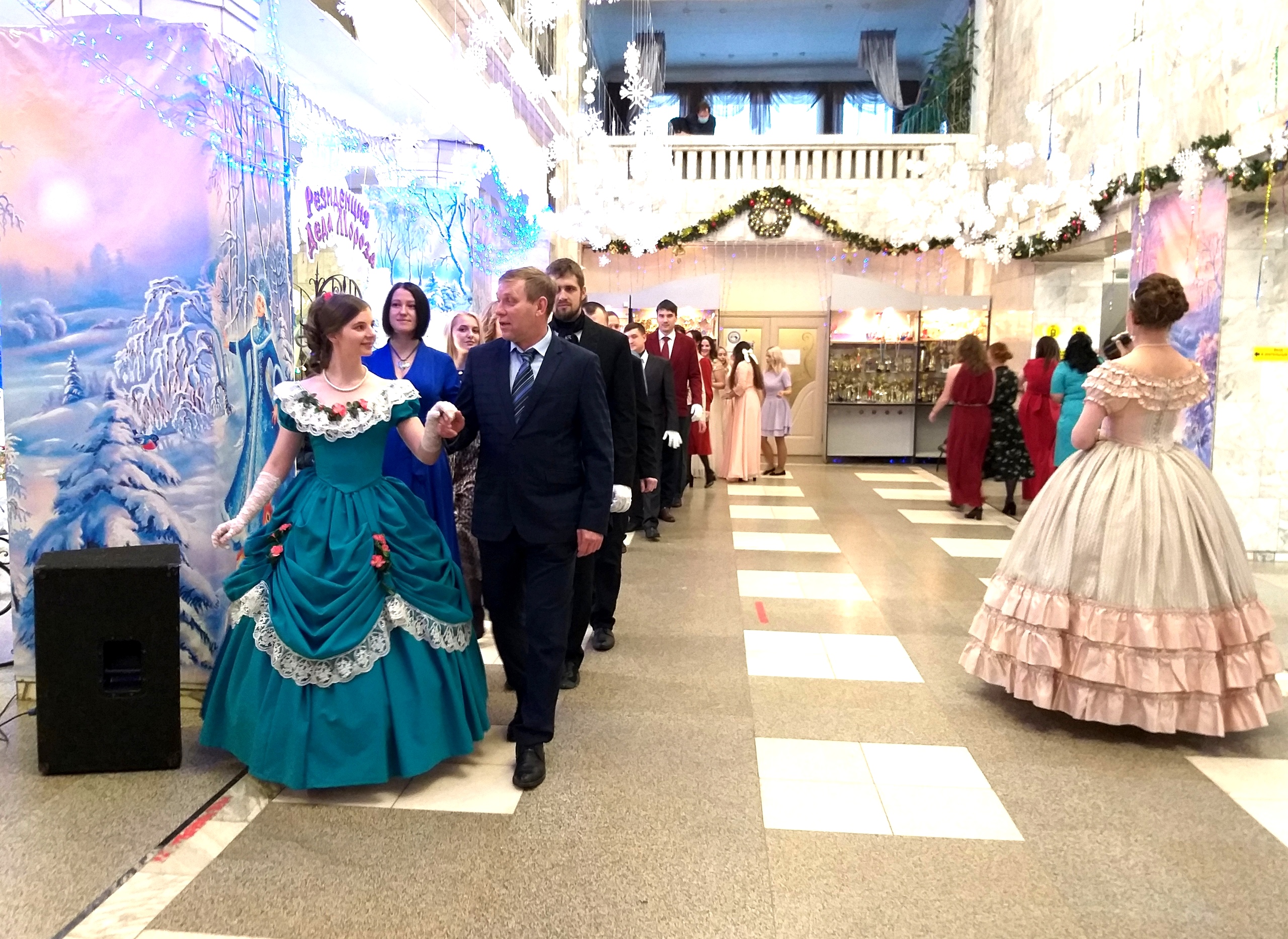 В волнительный период сбора гостей бывает непривычно видеть коллег в торжественных нарядах, с броскими аксессуарами и вечерними причёсками. Однако неловкость пропадает, стоит войти в бальную залу и встретиться с приглашёнными специалистами из Школы светского танца «Отражение» (https://vk.com/olddancensk). Они своим примером третий год задают тон и настроение событию, добавляют участникам уверенности в творческих силах.