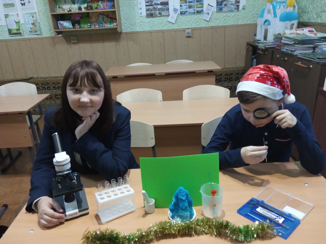 – в номинации «Научные ёлки» – работа «Ёлочка из кристаллов» (ТО «Юные экологи» МБОУ ДО ДДТ Чулымского района, руководитель О. Волкова).