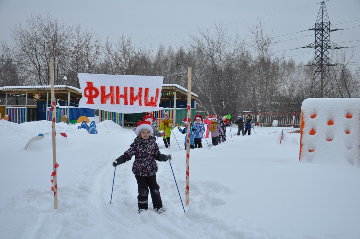 В преддверии Нового года для дошкольников старших и подготовительных групп в дошкольном образовательном учреждении прошел костюмированный лыжный забег.