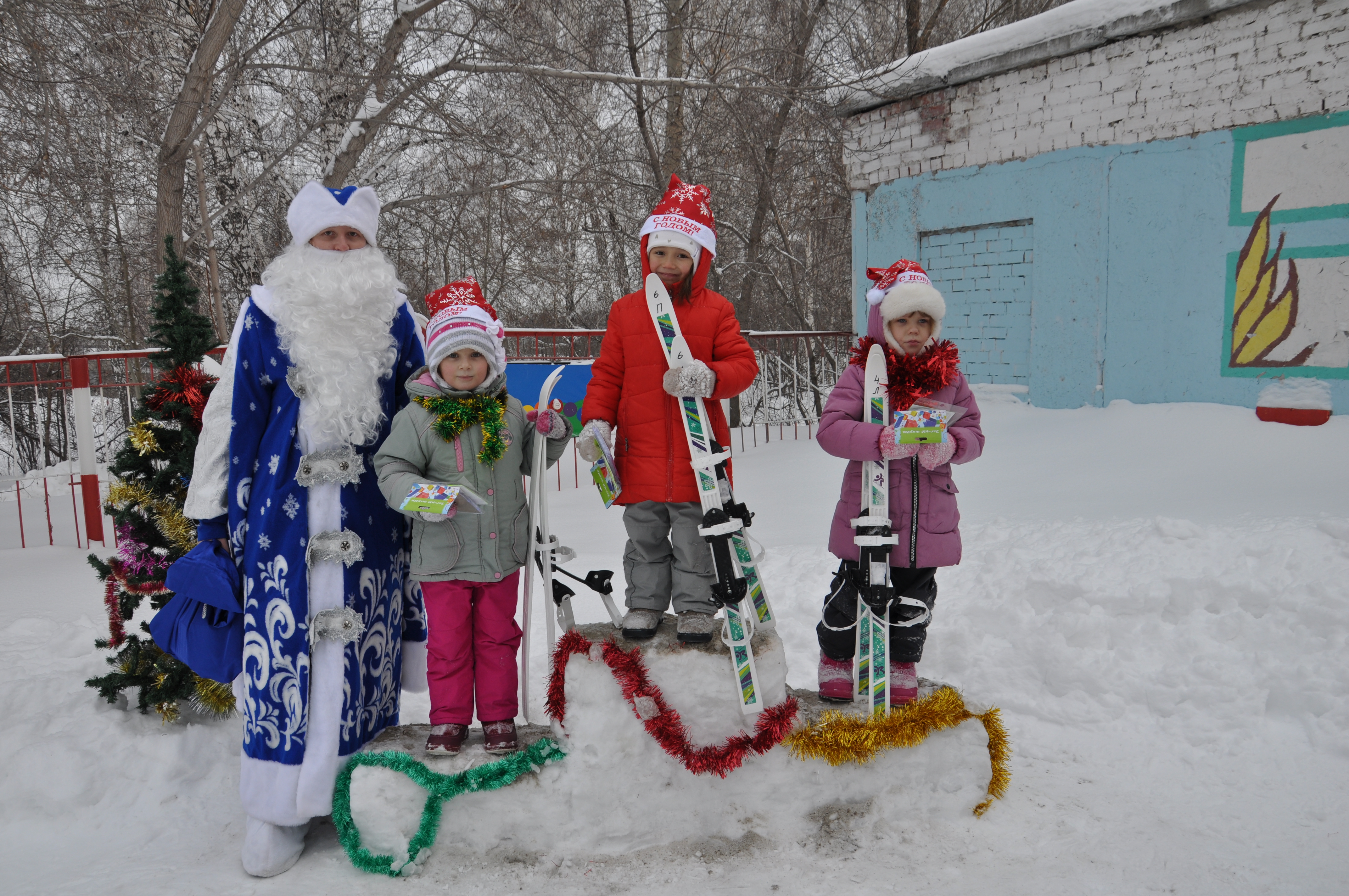 Мероприятие прошло на специально оборудованной площадке, с импровизированным пьедесталом из снега, украшенным мишурой.