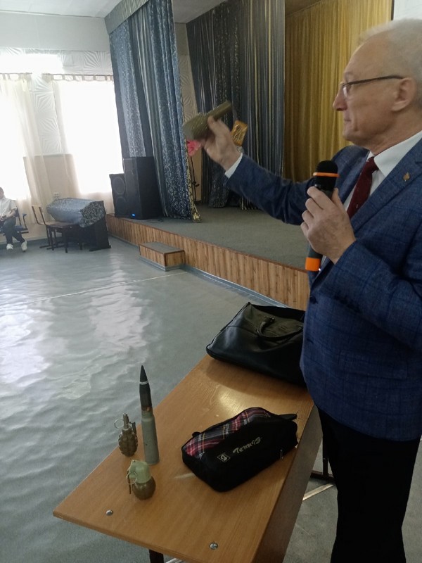 Он рассказал ребятам о международном терроризме, о его бесчеловечной сущности, привел примеры успешных спецопераций, которыми он руководил. Показал образцы гранат, подлинные расписки боевиков о получении денег за торговлю людьми и за совершённые преступления.