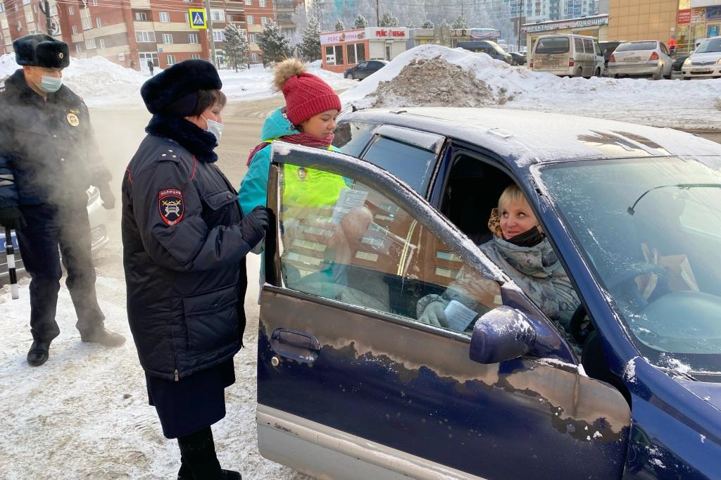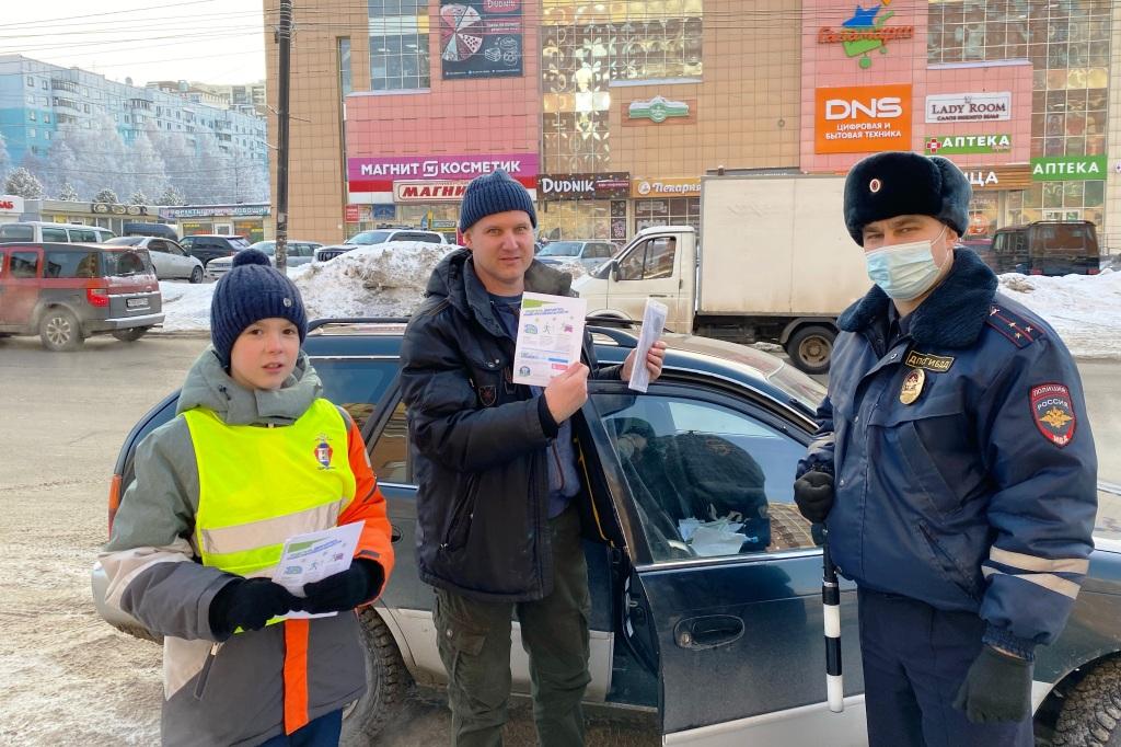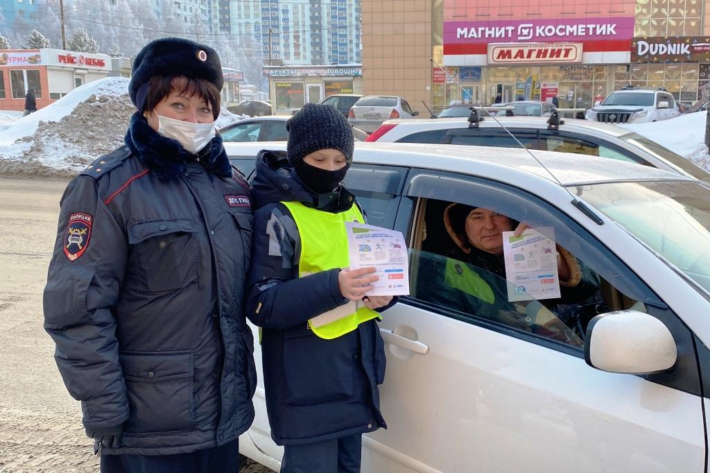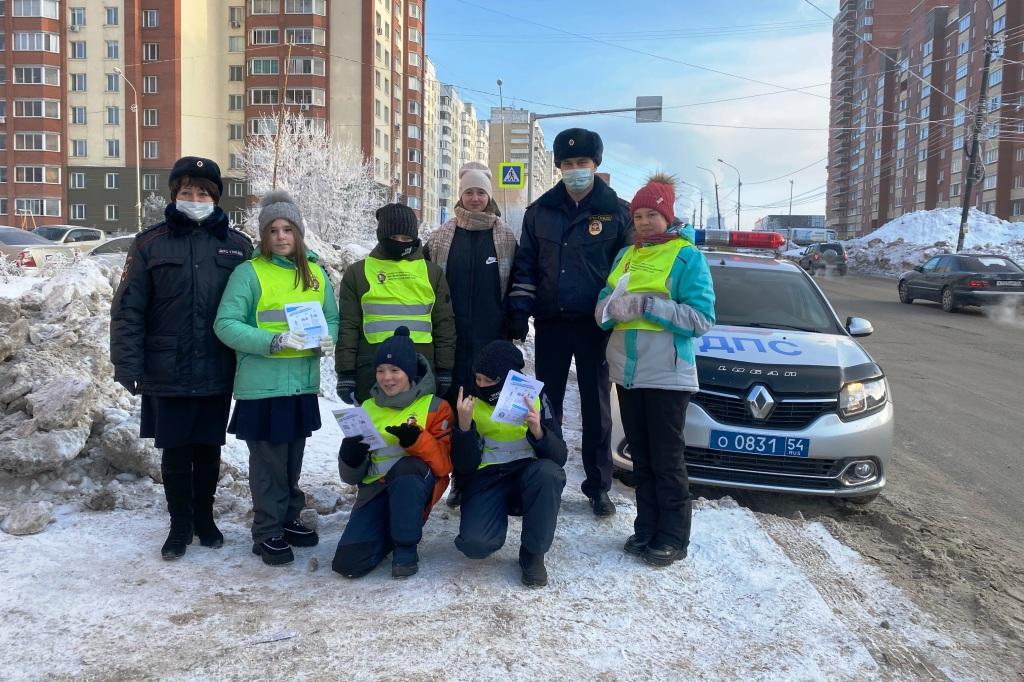 Сотрудники Госавтоинспекции Новосибирска и школьники пожелали водителям «зеленого света» на дороге