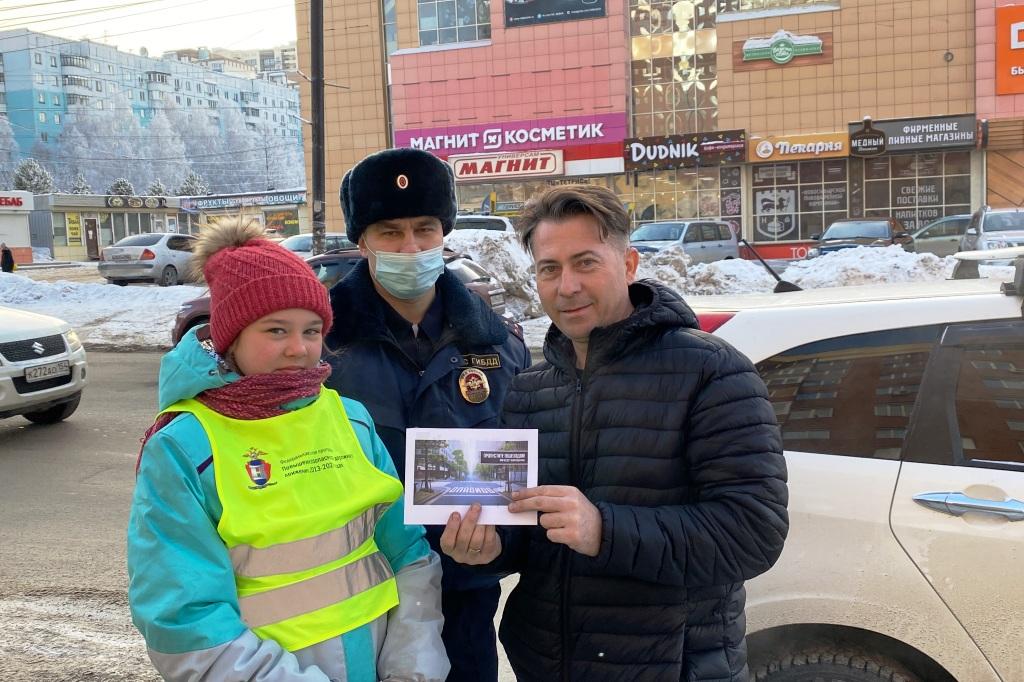 На прощание ребята вручали водителям заранее подготовленные тематические буклеты и желали им зеленого света в пути.