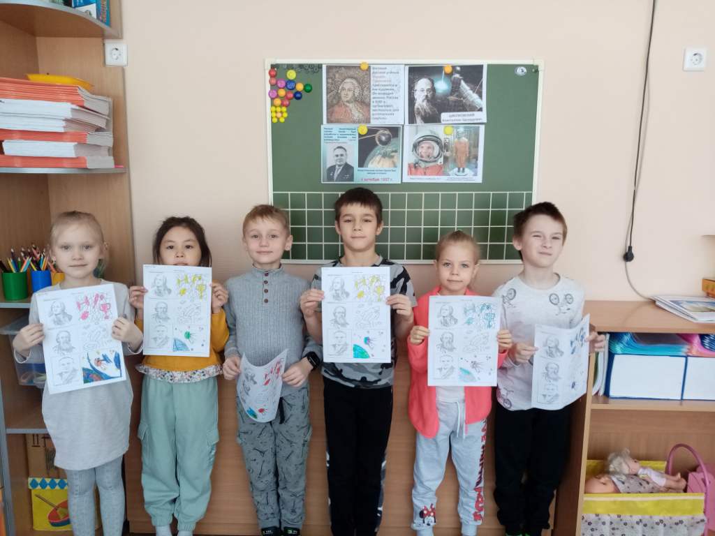 Дети познакомились с учеными через словесную игру «Назови ученого», узнали об интересных открытиях М. В. Ломоносова и поиграли в настольную игру «Цветная мозаика». Когда ребята на листах выполняли задание «Соедини цифры по порядку», они увидели, что получилась ракета и узнали про изобретение космической ракеты К. Э. Циолковским. Дети активно участвовали в опыте-игре «Самолет» и поняли, как не просто ученым проводить научные опыты и добиваться хороших, положительных результатов. Также ребята познакомились с изобретениями С. П. Королева, который вывел на околоземную орбиту первый искусственный спутник и первого космонавта планеты Ю. А. Гагарина.