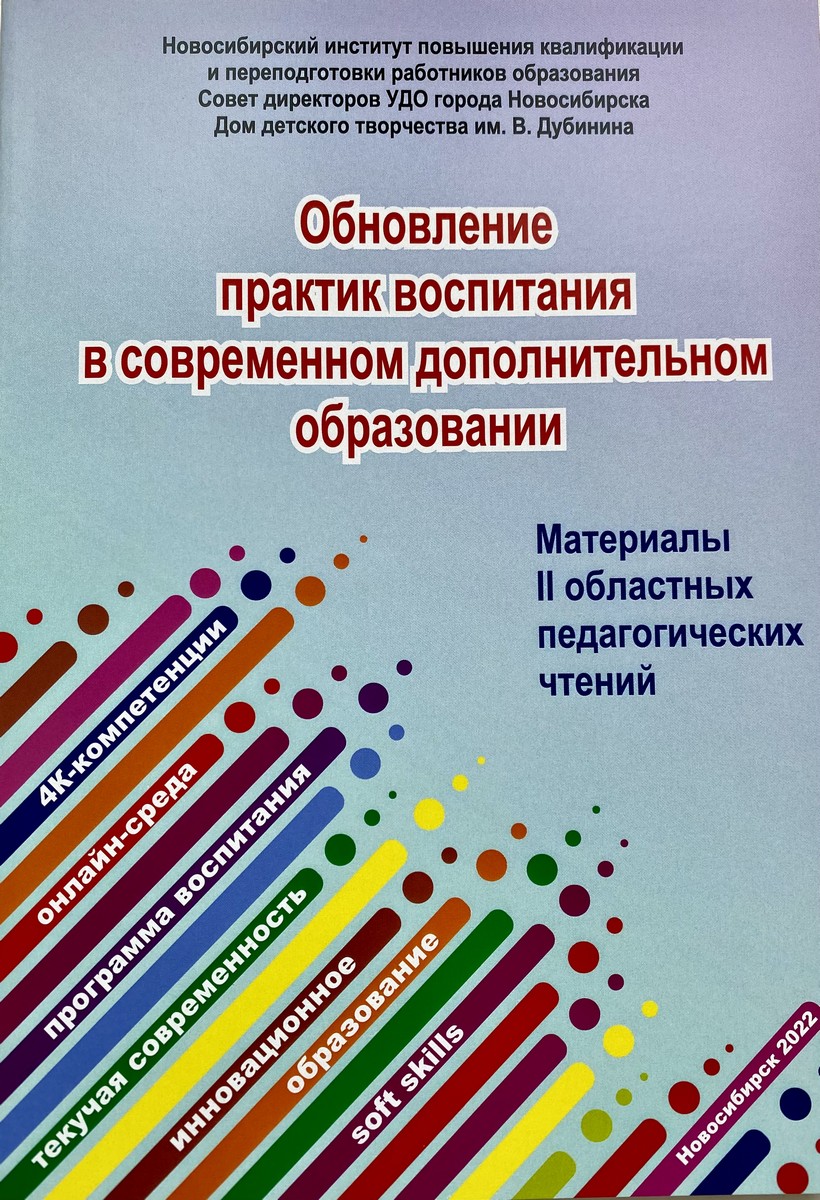 16 февраля состоялись Областные педагогические чтения «Обновление практик воспитания в современном дополнительном образовании». Организаторами выступили Дом детского творчества им. В. Дубинина, ГАУ ДПО НСО «Новосибирский институт повышения квалификации и переподготовки работников образования» и Совет директоров УДО города Новосибирска. Впервые из-за эпидемиологической ситуации мероприятие состоялось в онлайн-формате.