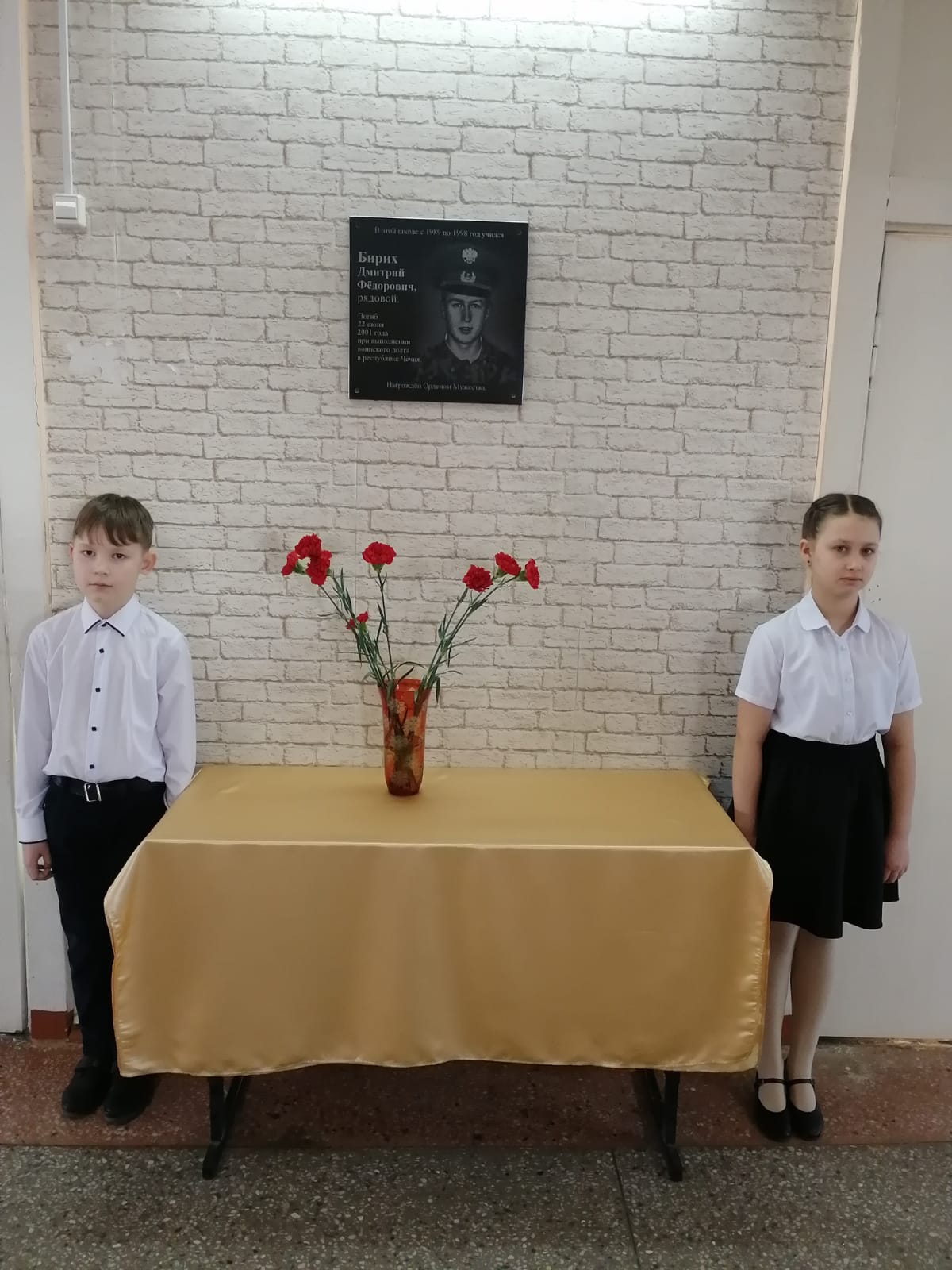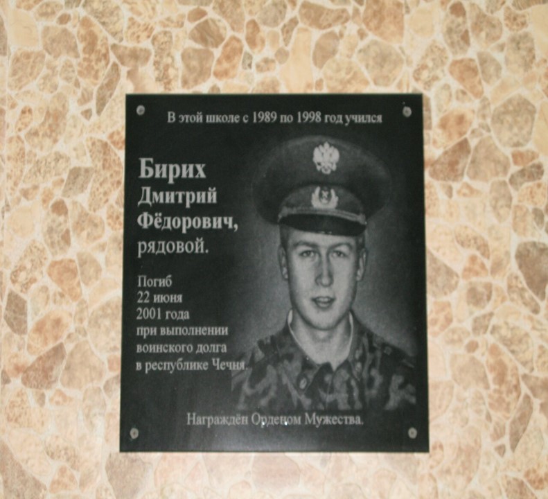 Традицией нашей школы является Вахта Памяти, которая проводится 15 февраля. Вахта Памяти посвящена герою, ученику нашей школы Бириху Дмитрию. Указом президента РФ N 984 от 9.02.2002 г. за мужество и отвагу, проявленные при выполнении спецзадания, военнослужащий в/ч 5430 ефрейтор Бирих Дмитрий Федорович награжден орденом Мужества (посмертно). В пункте временной дислокации в/ч 5430, где проходил службу Дмитрий Бирих, для увековечения его памяти военнослужащими части возведена мемориальная плита и горит Вечный огонь.
