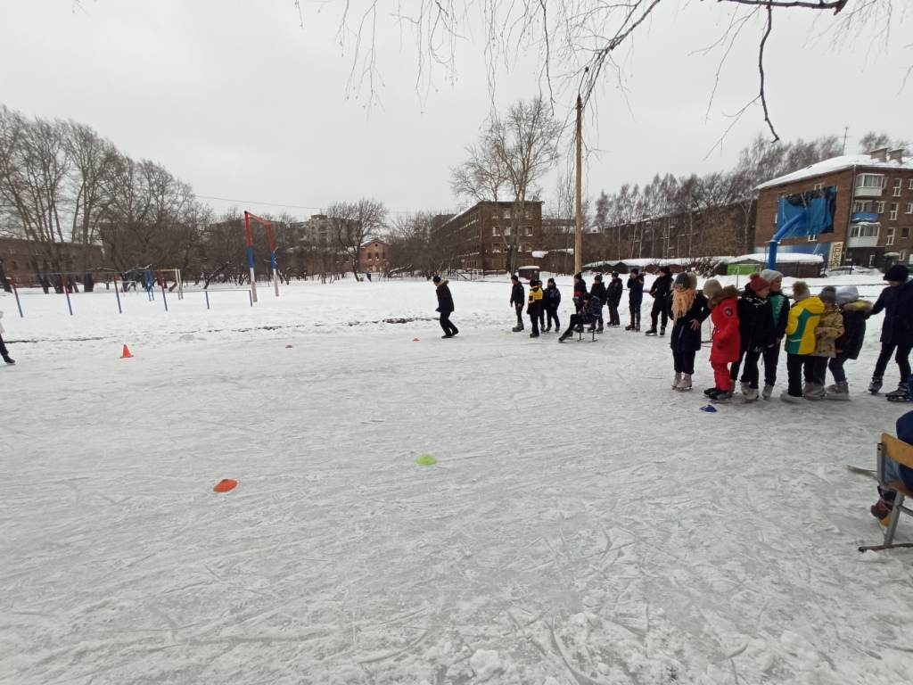 На старт вышли две команды мальчиков и девочек, учащихся начальных классов. Команды состязались в конкурсах: бег на коньках с препятствиями, передача мяча с помощью клюшки, «попади в цель». Ребята в интересной, увлекательной форме смогли проявить свои спортивные навыки. Все старались прийти к финишу первыми.