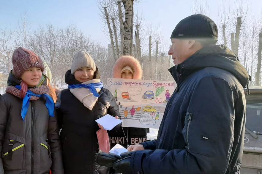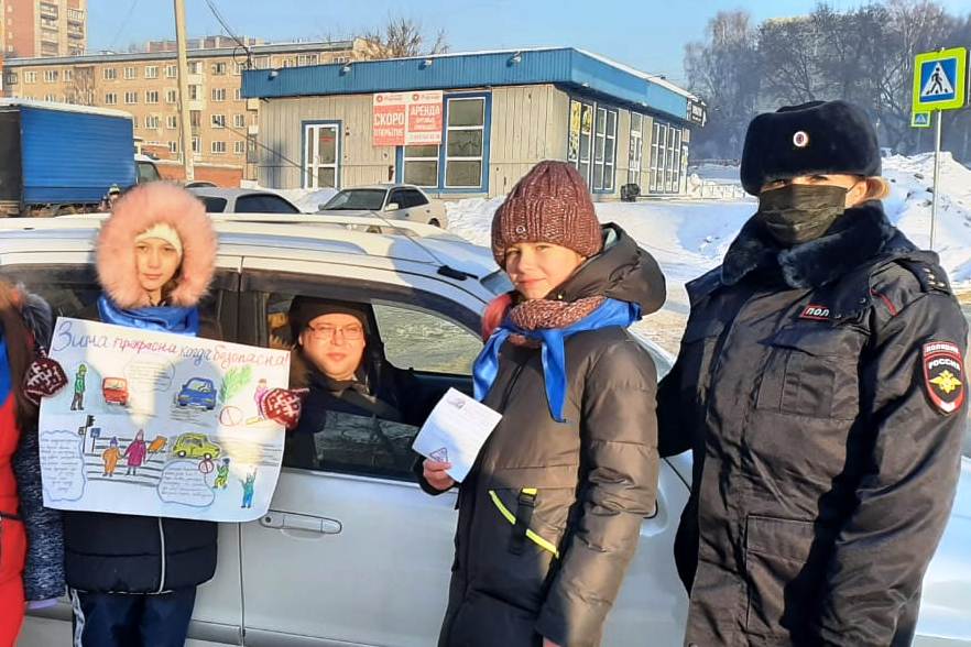 Сотрудники ГИБДД и дети провели совместную акцию «Зима прекрасна, когда безопасна!»